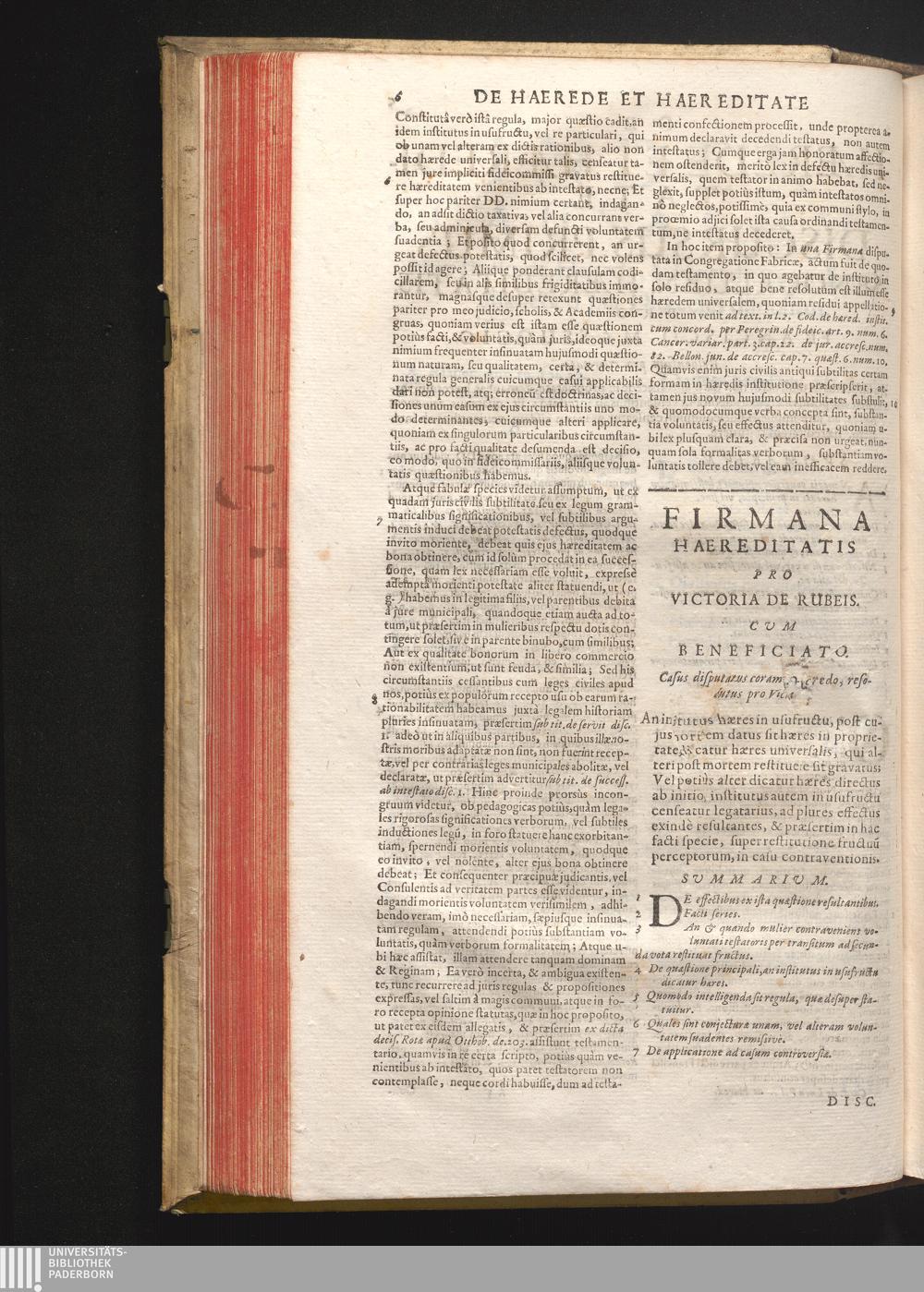 Disc. II. Firmana hæreditatis. An institutus hæres in usufructu, post cujus mortem[...]
