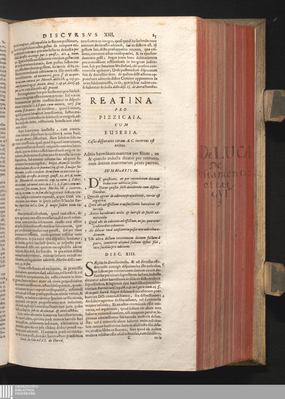 Dsic. XIII. Reatina. Aditio hæreditatis maternæ per filium, an & quando inducta dicatur[...]