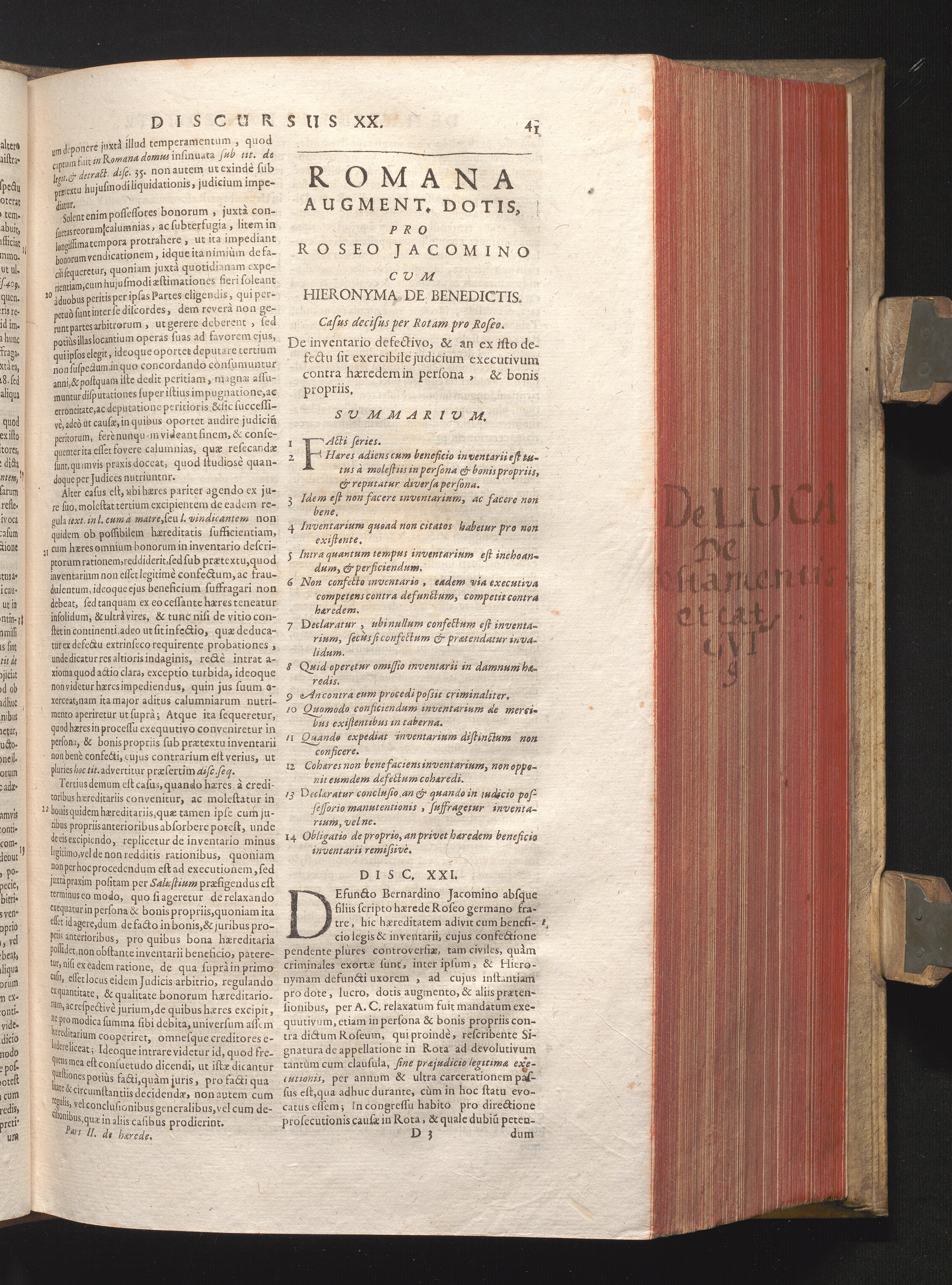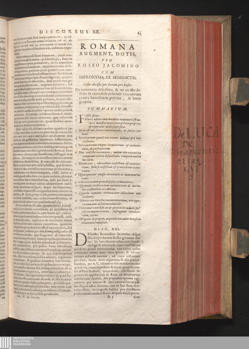 Disc. XXI. Romana augment. dotis. De inventario defectivo, & an ex isto defectu sit[...]