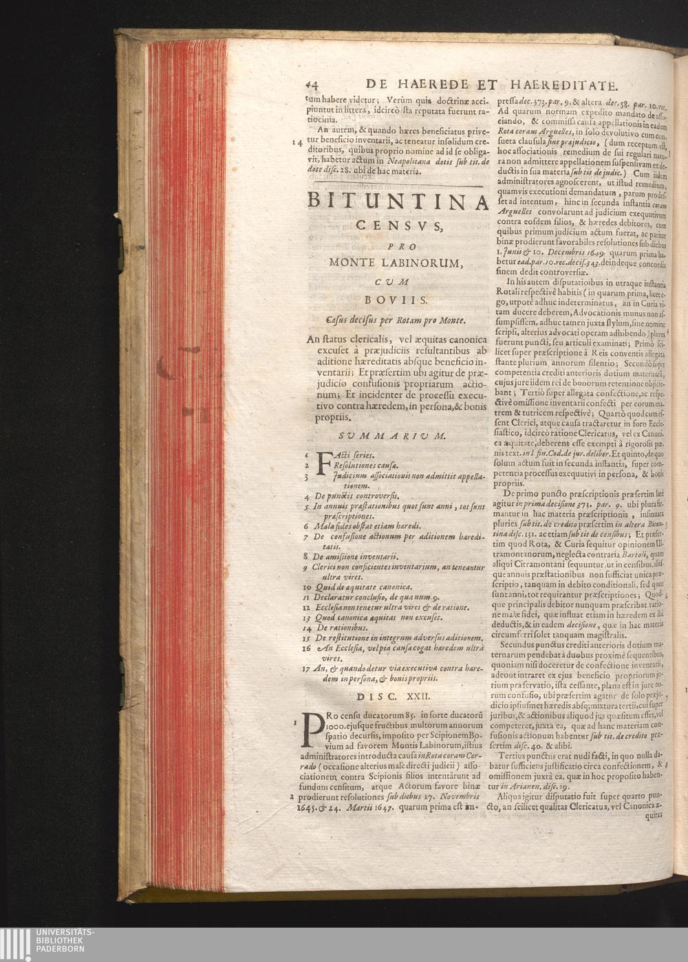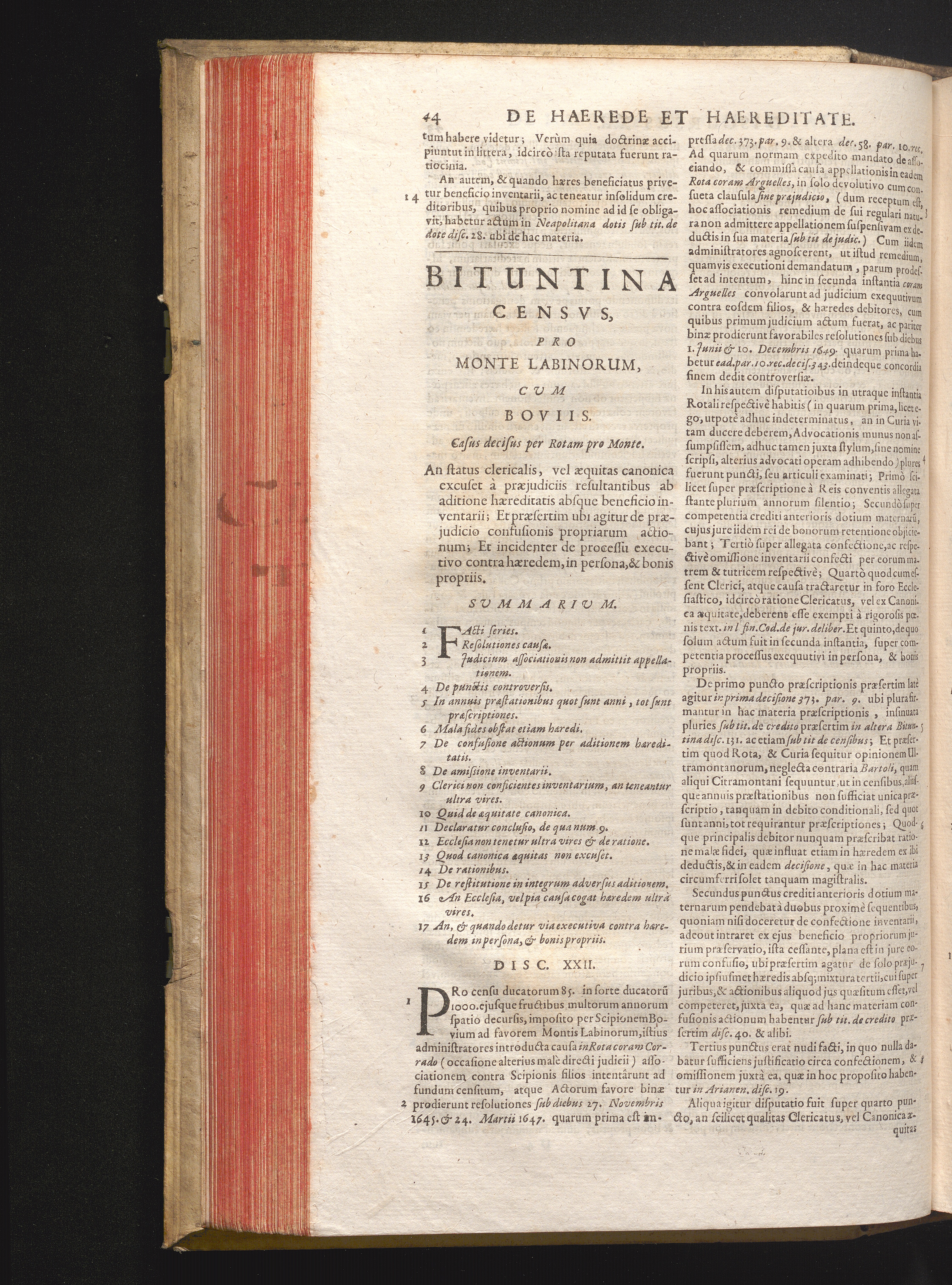 Disc. XXII. Bituntina census. An status clericalis, vel æquitas canonica excuset[...]