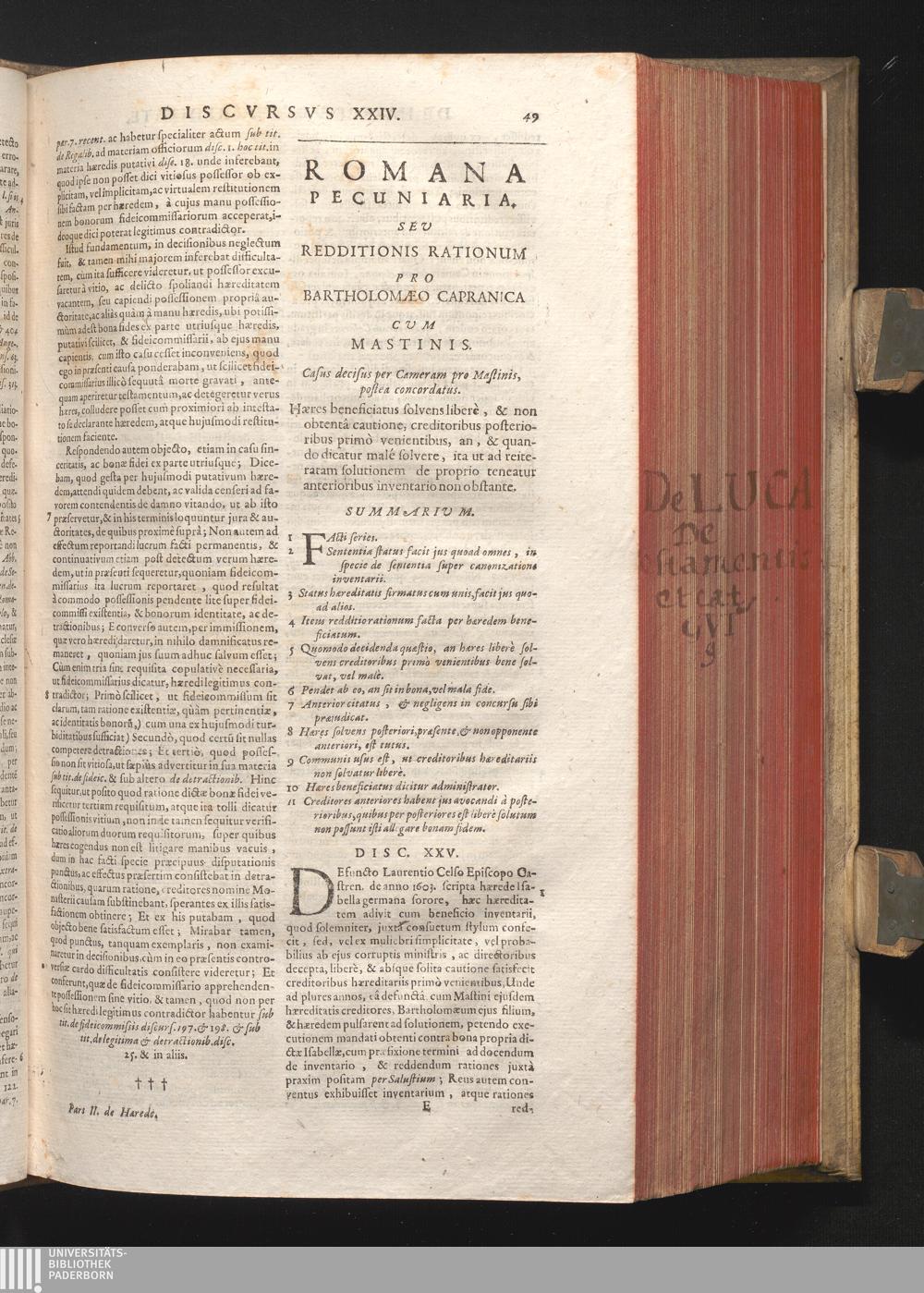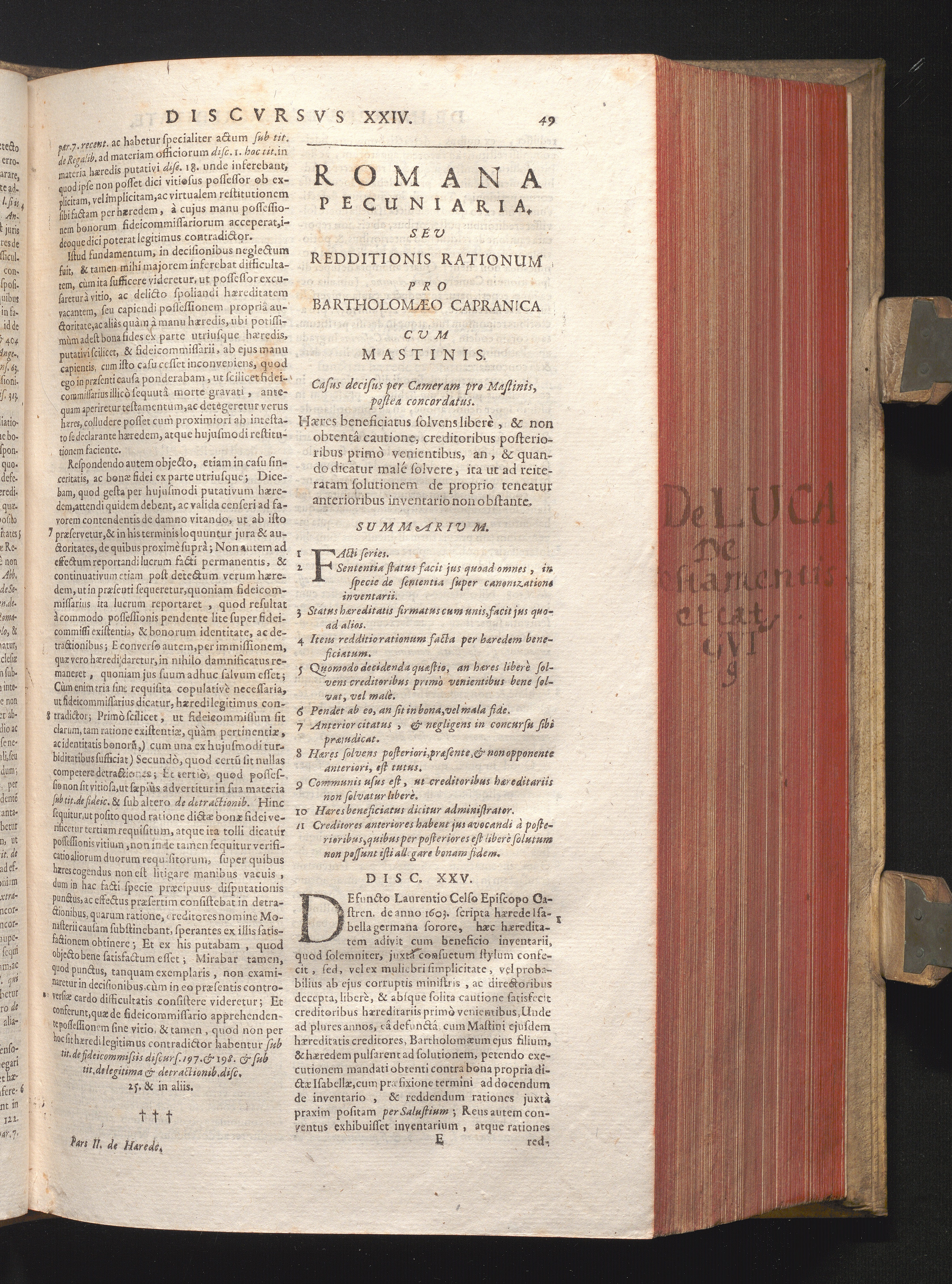 Disc. XXV. Romana pecuniaria. Hæres beneficiatus solvens liberè, & non obtentâ cautione,[...]