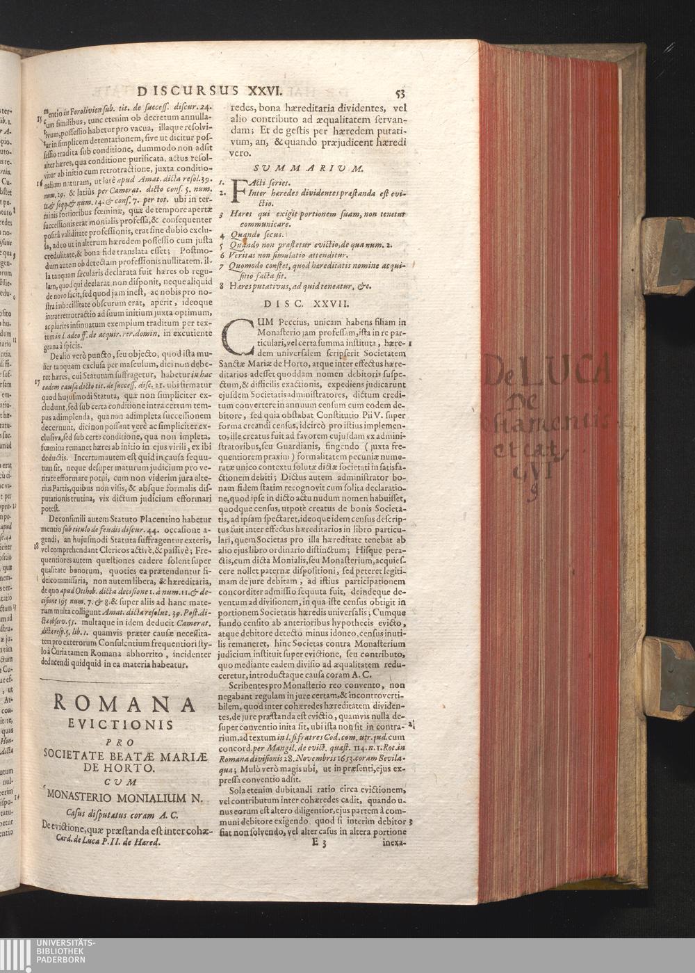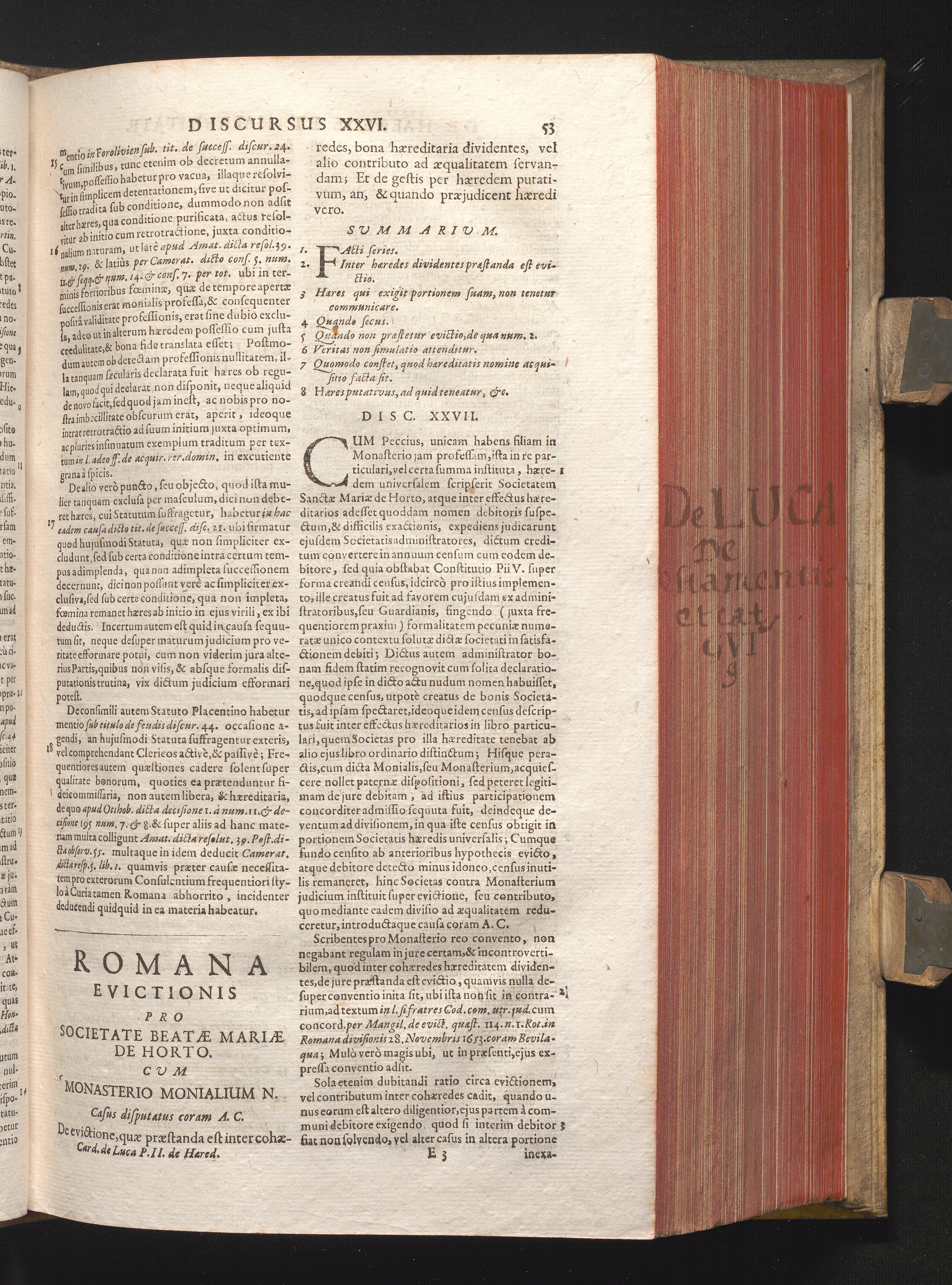 Disc. XXVII. Romana evictionis. De evictione, quæ præstanda est inter cohæredes,[...]