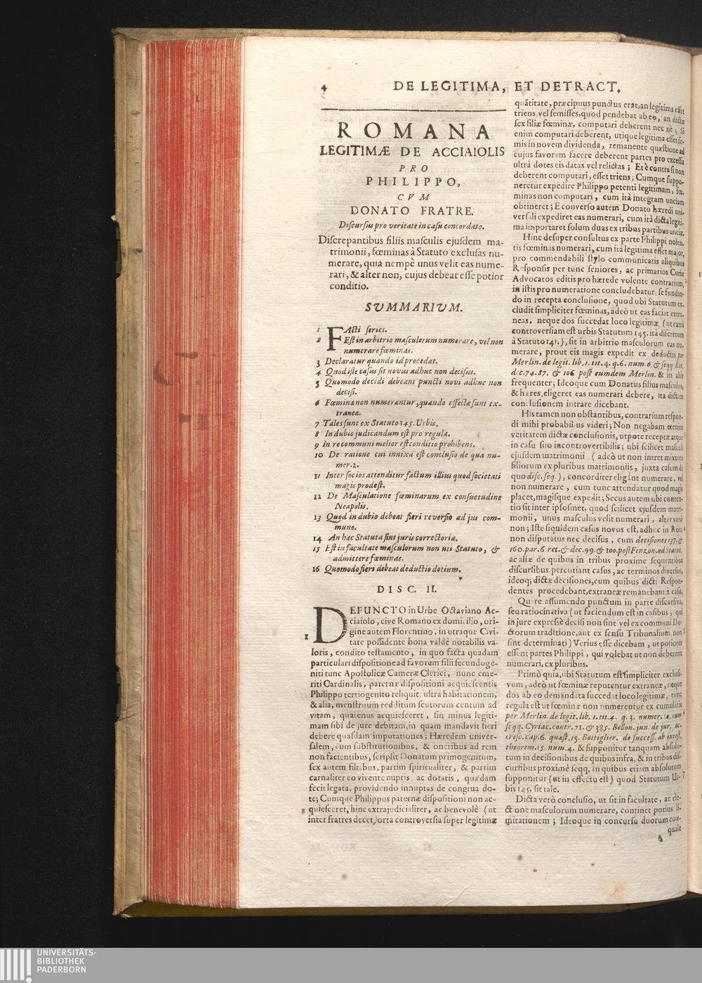 Disc. II. Romana legitimæ de Acciaiolis. Discrepantibus filiis masculis ejusdem matrimonii,[...]