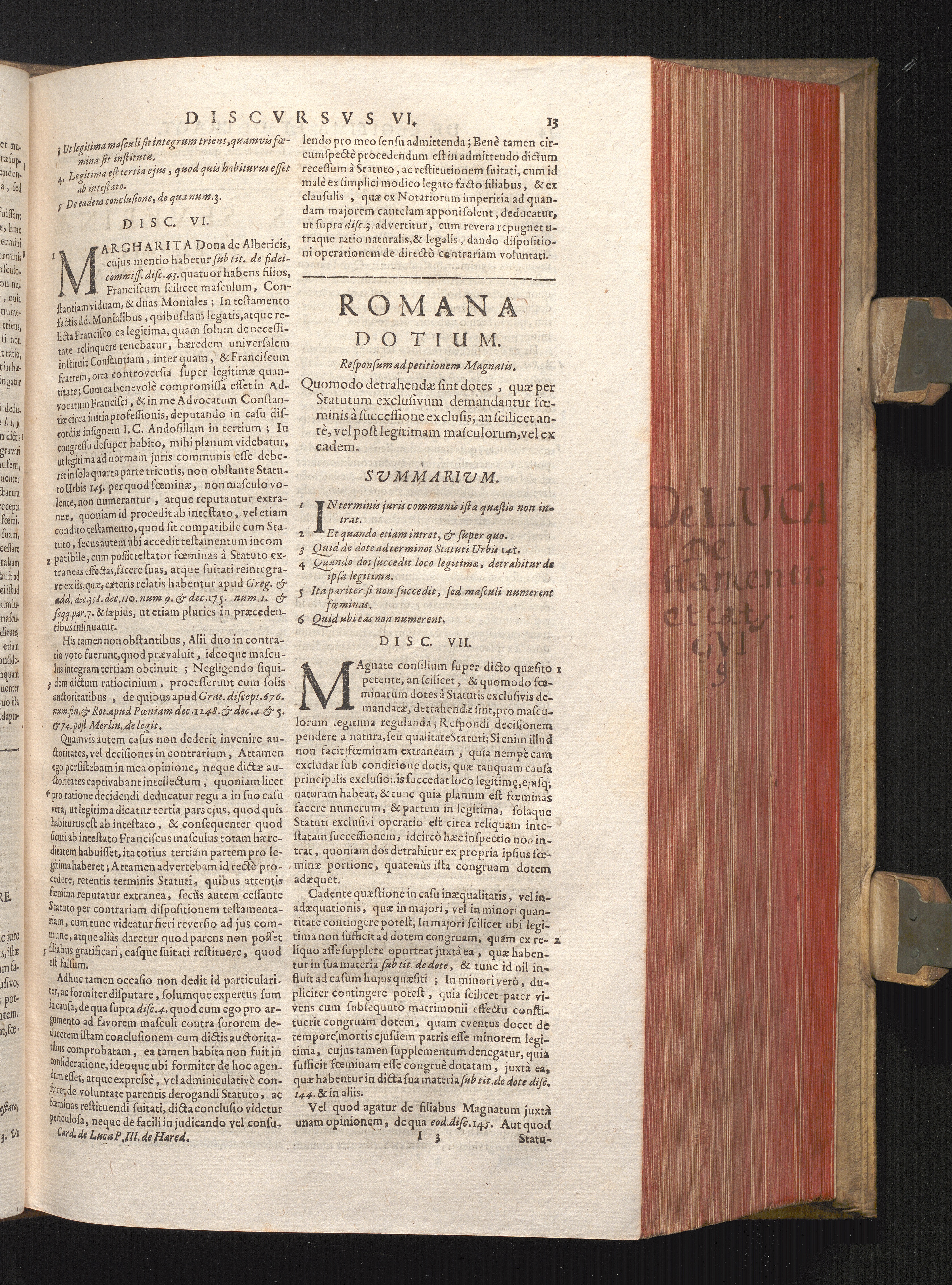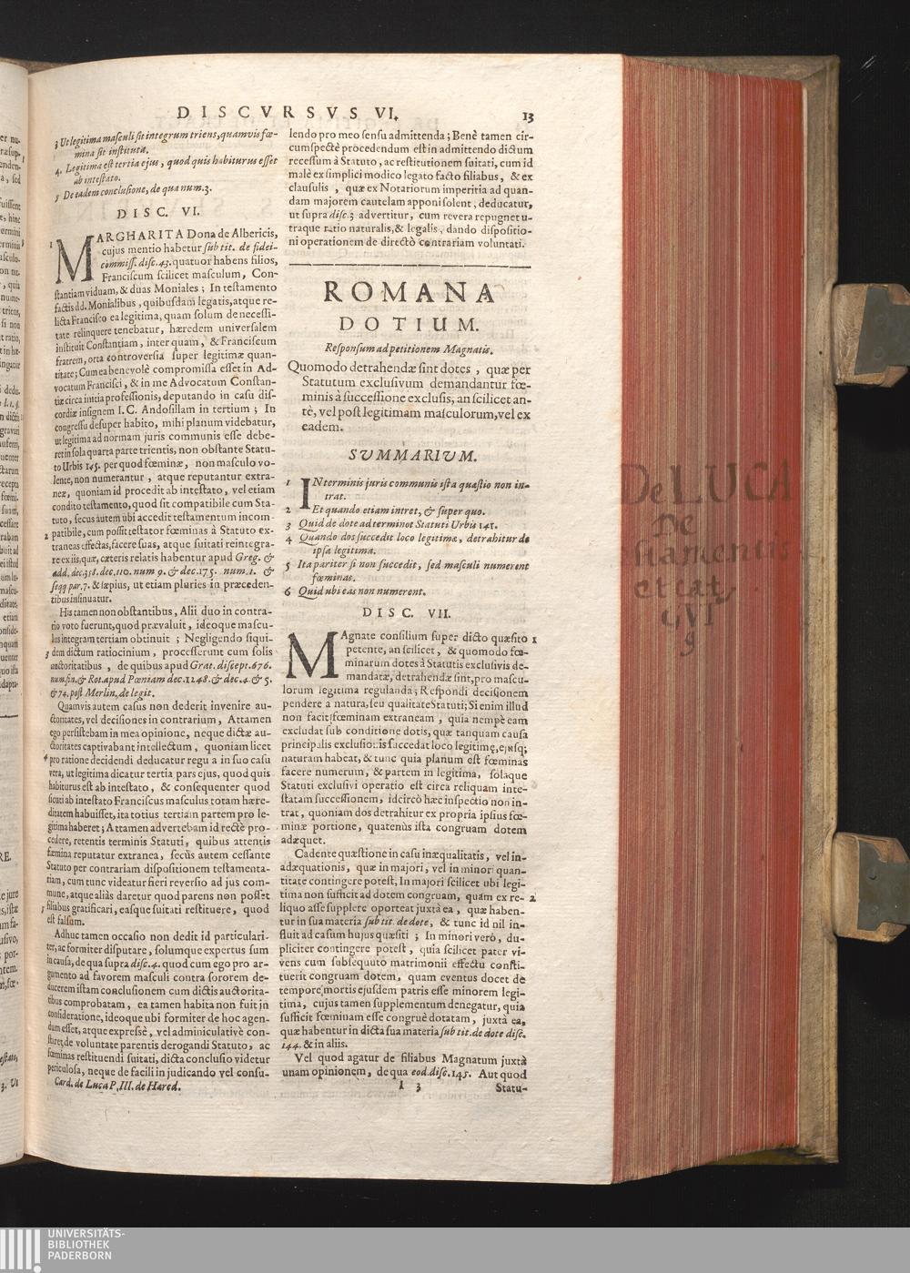 Disc. VII. Romana dotium. Quomodo detrahendæ sint dotes, quæ per Statutum exclusivum,[...]