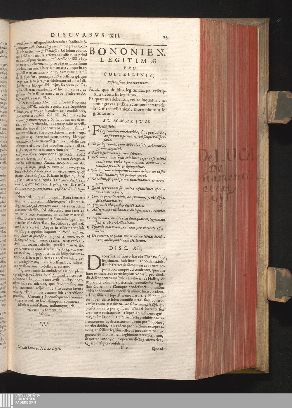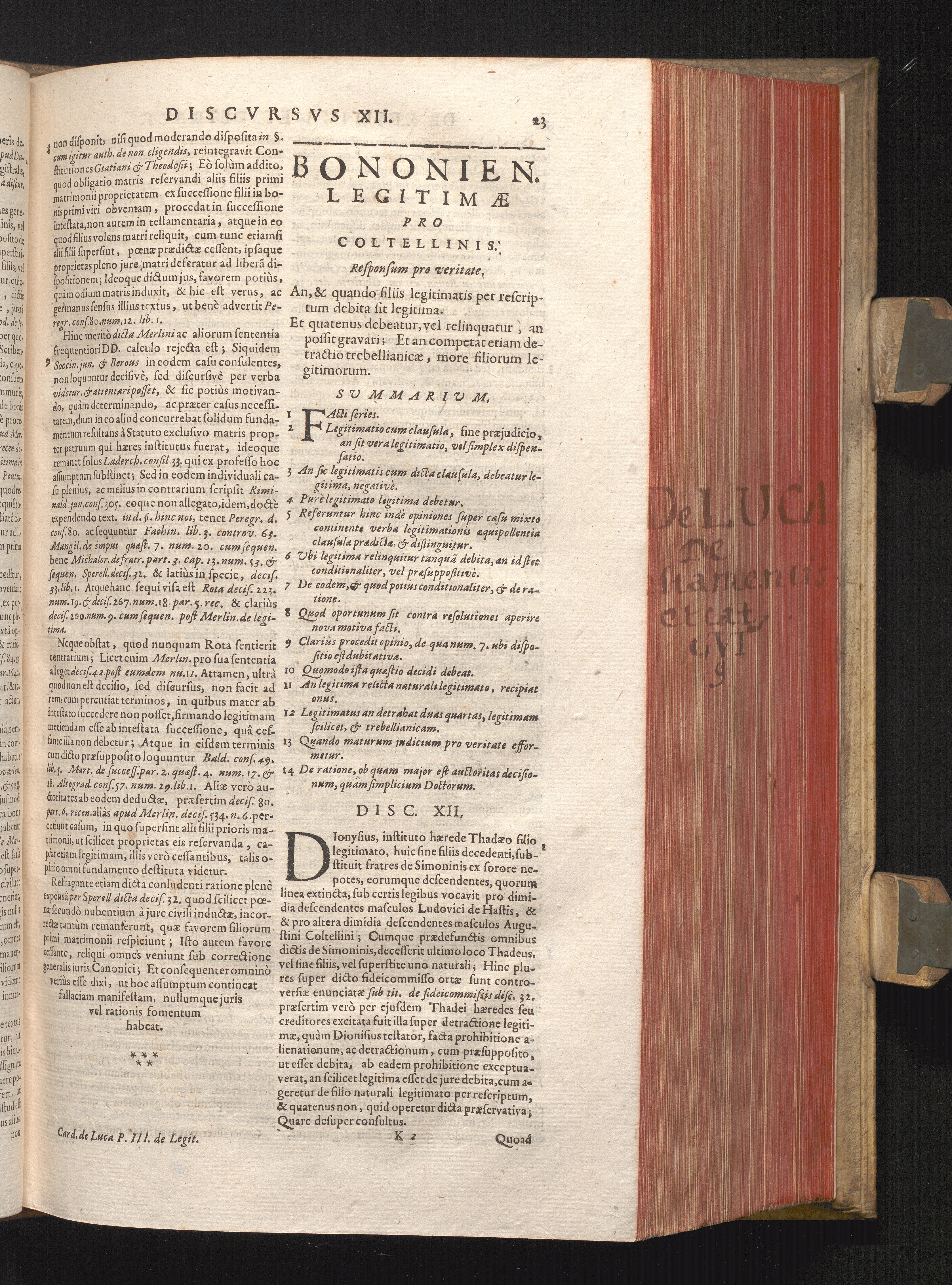 Disc. XII. Bononien. legati. An, & quando filiis legitimatis per rescriptum debita[...]