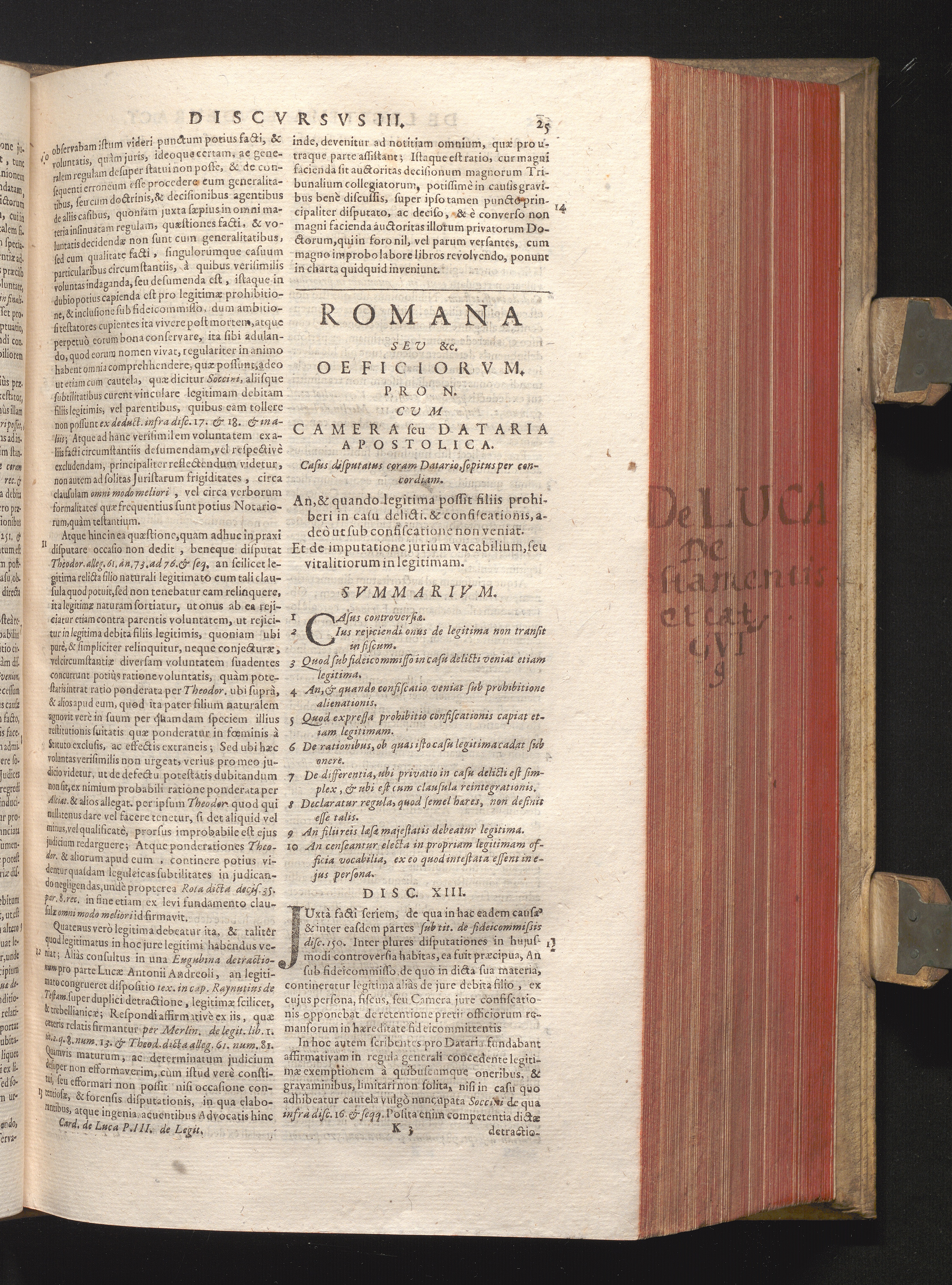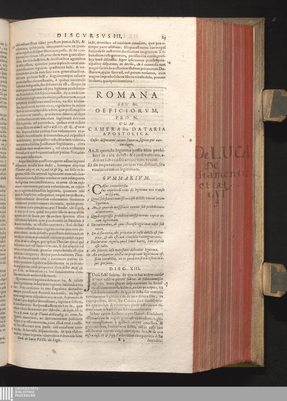 Disc. XIII. Romana seu &c. Officiorum. An, & quando legitima possit filiis prohiberi[...]