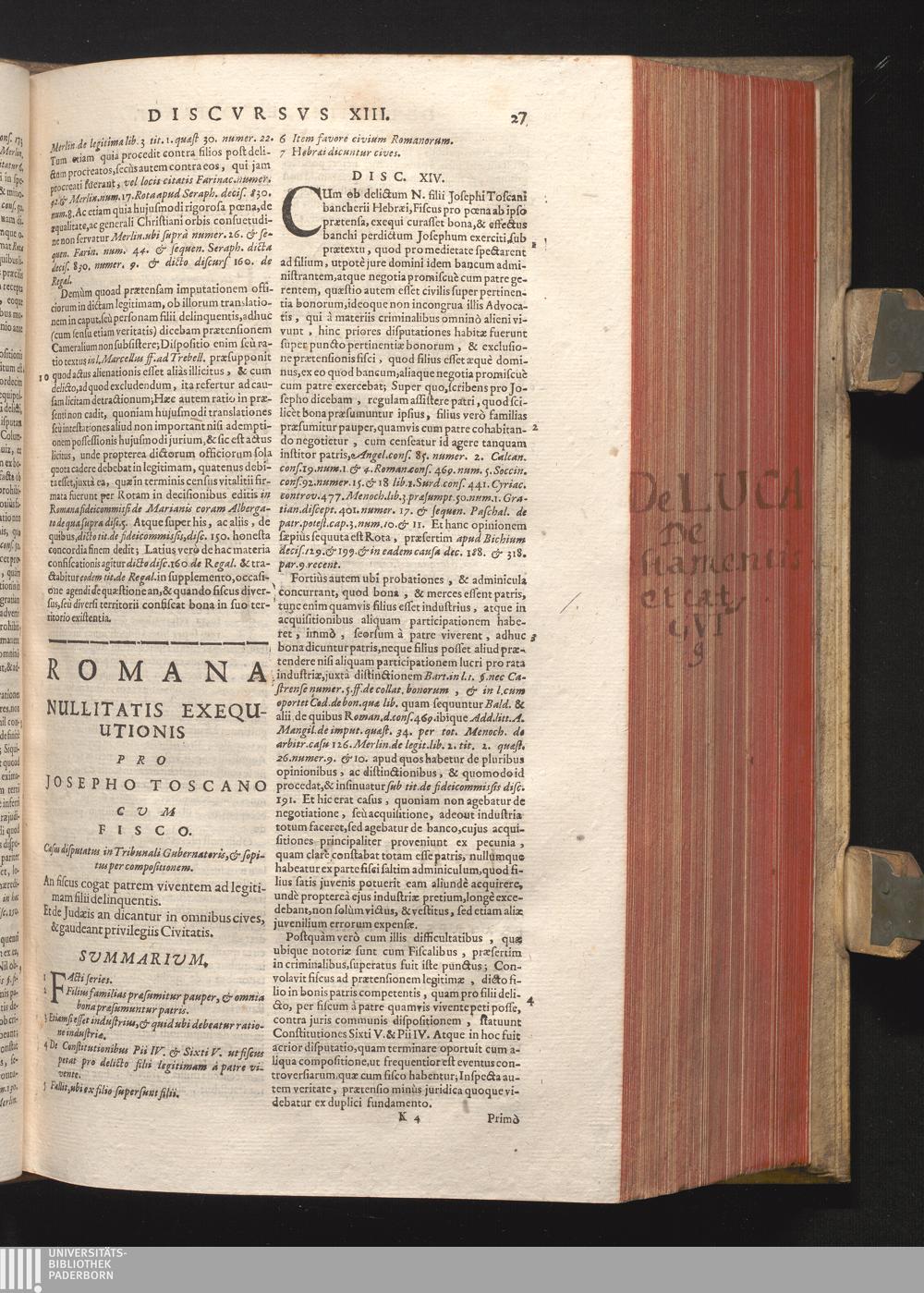 Disc. XIV. Romana nullitatis exequutionis. An fiscus cogat patrem viventem ad legitimam[...]