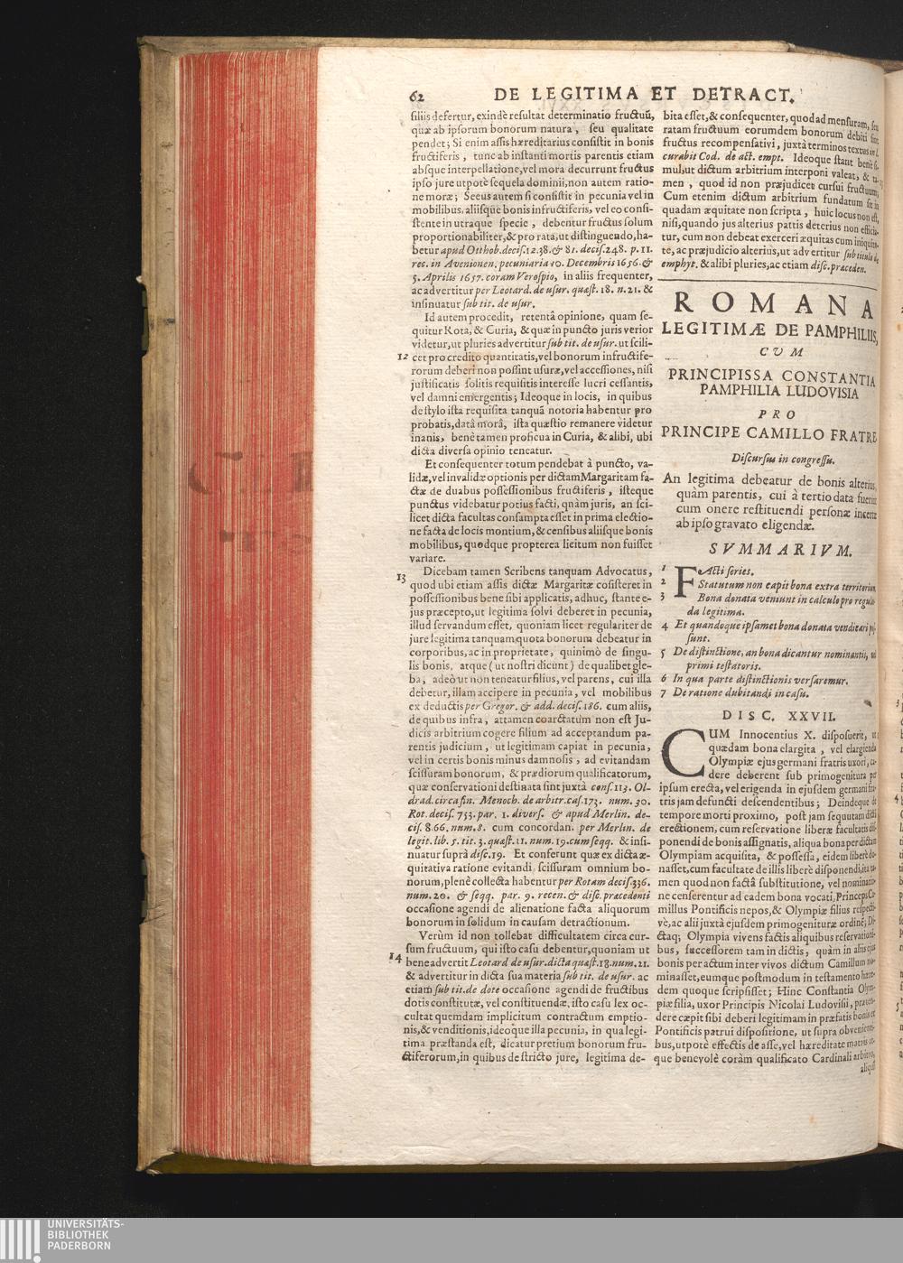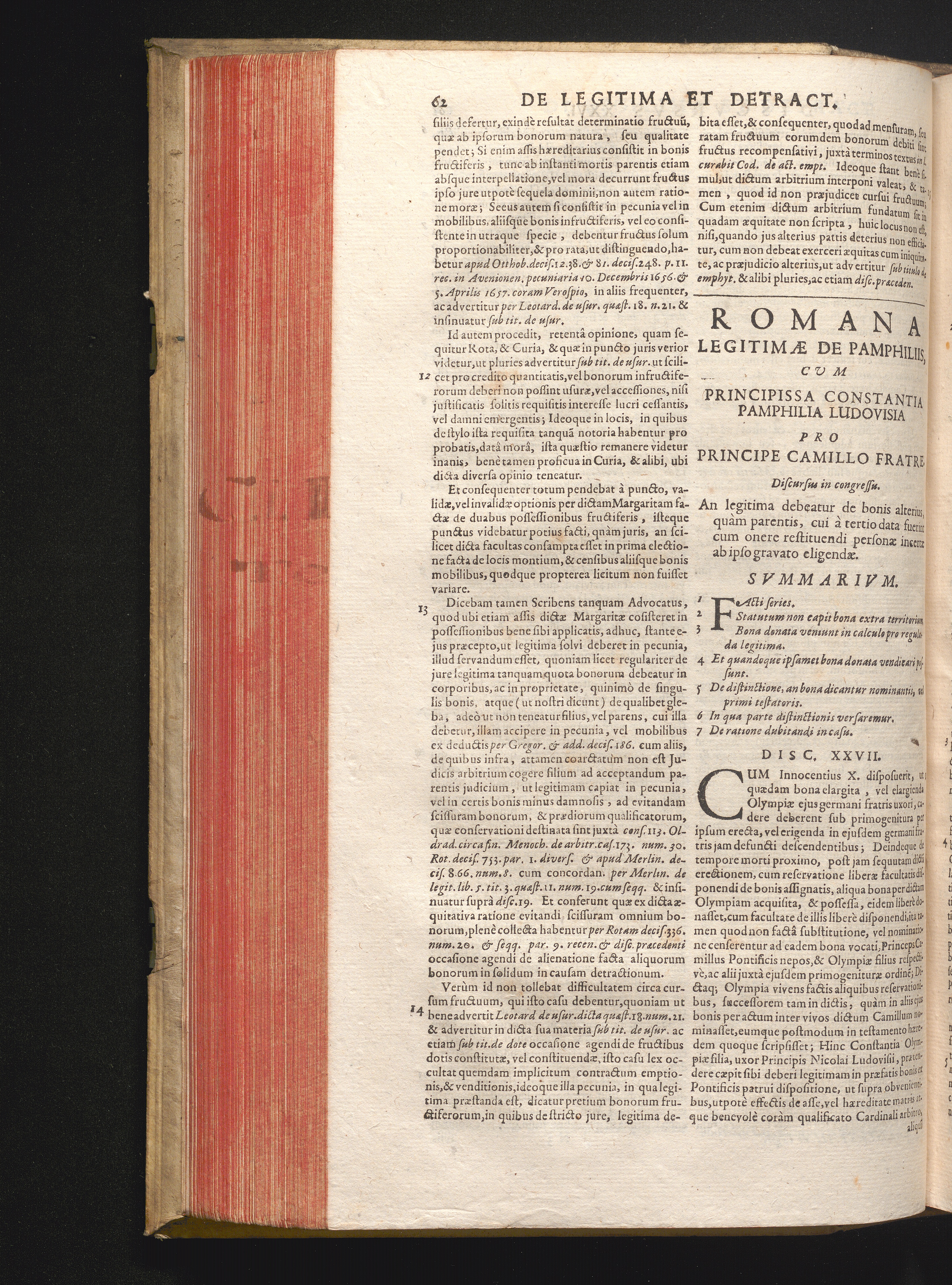 Disc. XXVII. Romana legitimæ de Pamphiliis. An legitima debeatur de bonis alterius,[...]