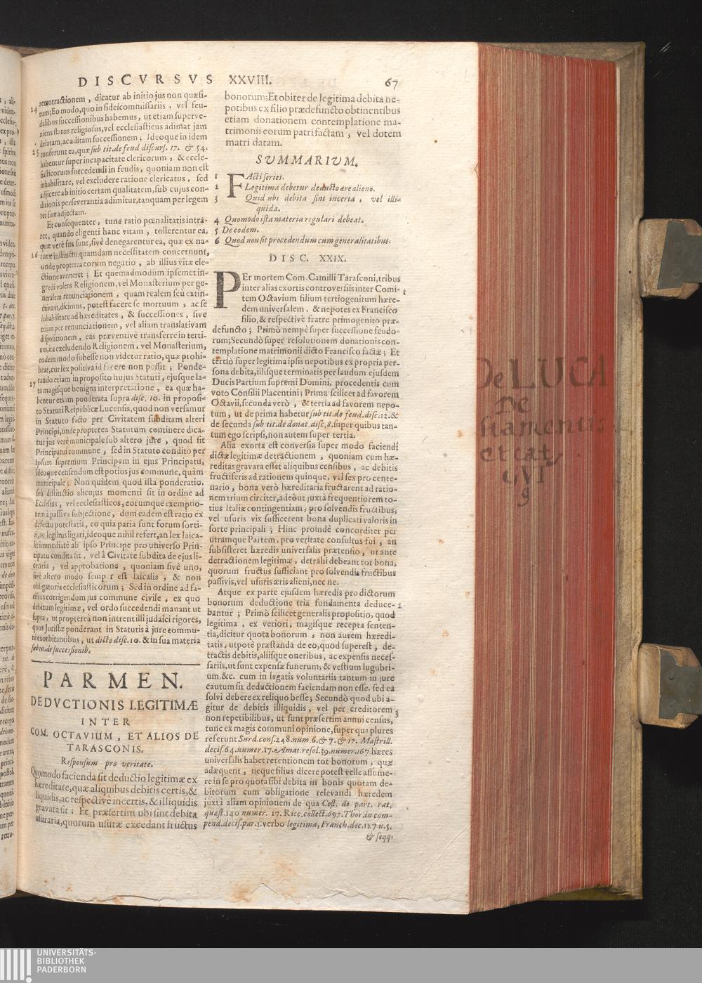 Disc. XXIX. Parmen. deductionis legitimæ. Quomodo facienda sit deductio legitimæ[...]