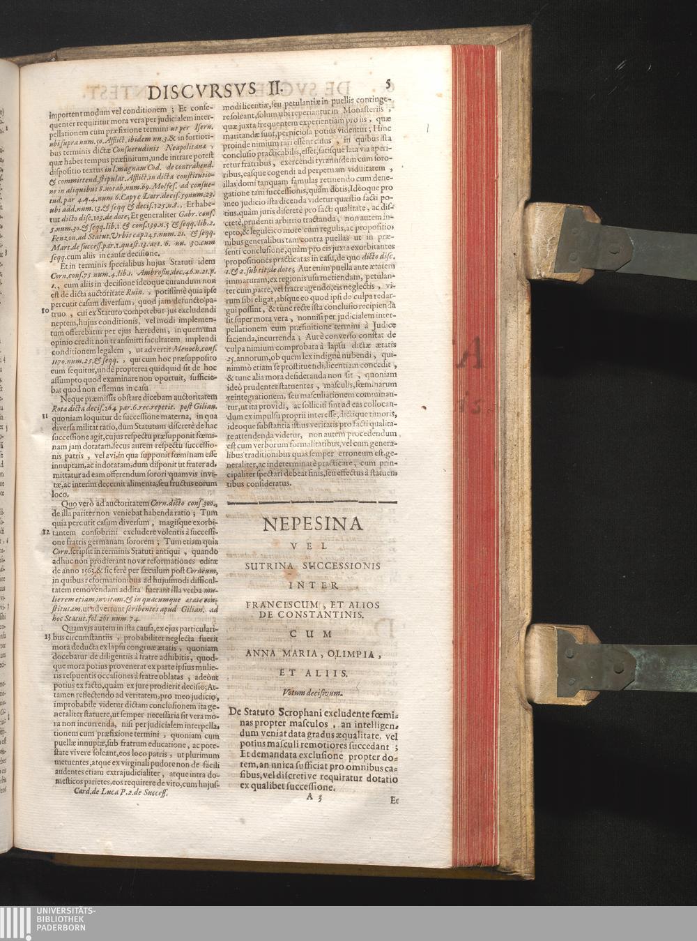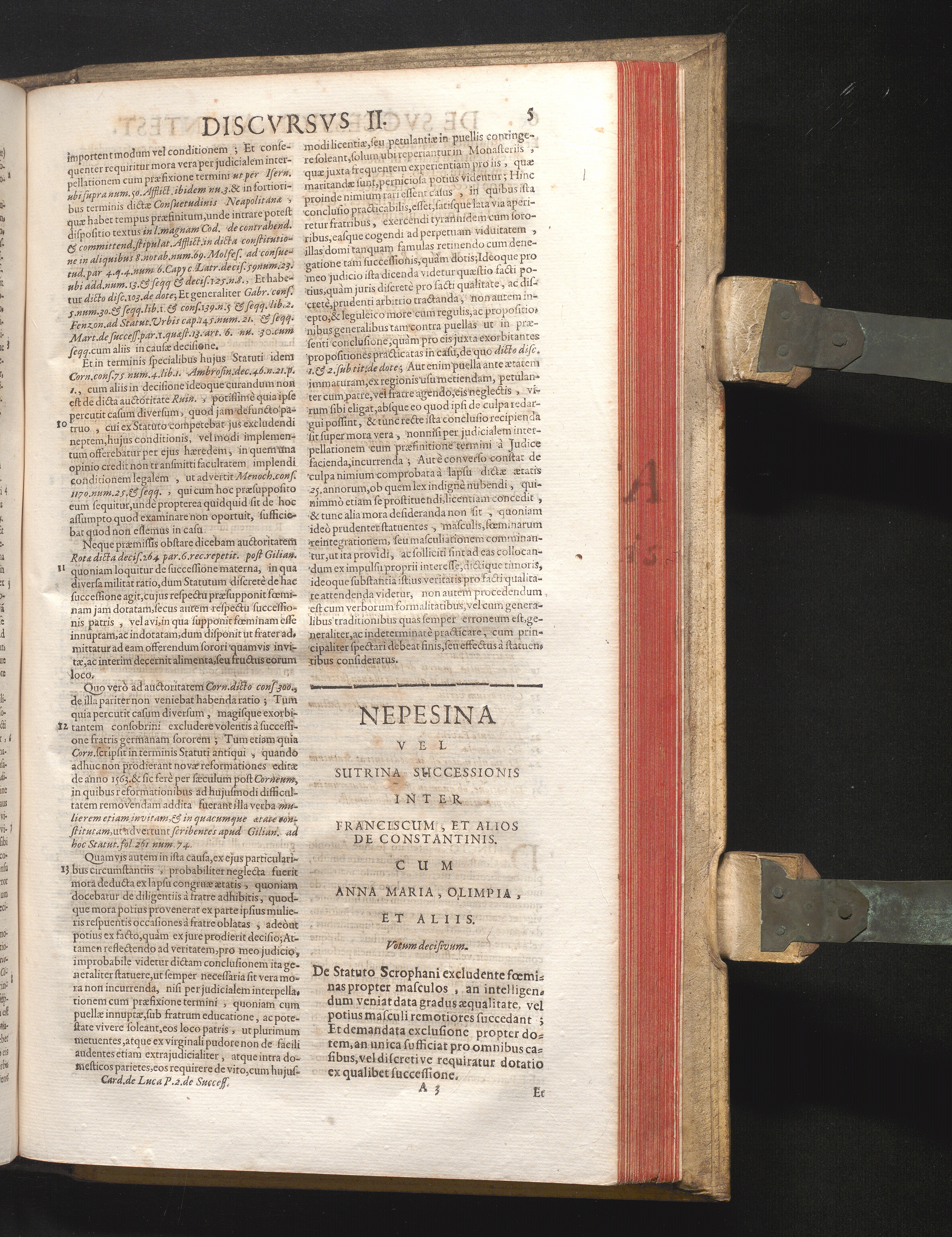 Disc. III. Nepesina, vel Sutrina successionis. De Statuto Scrophani excludente fœminas[...]