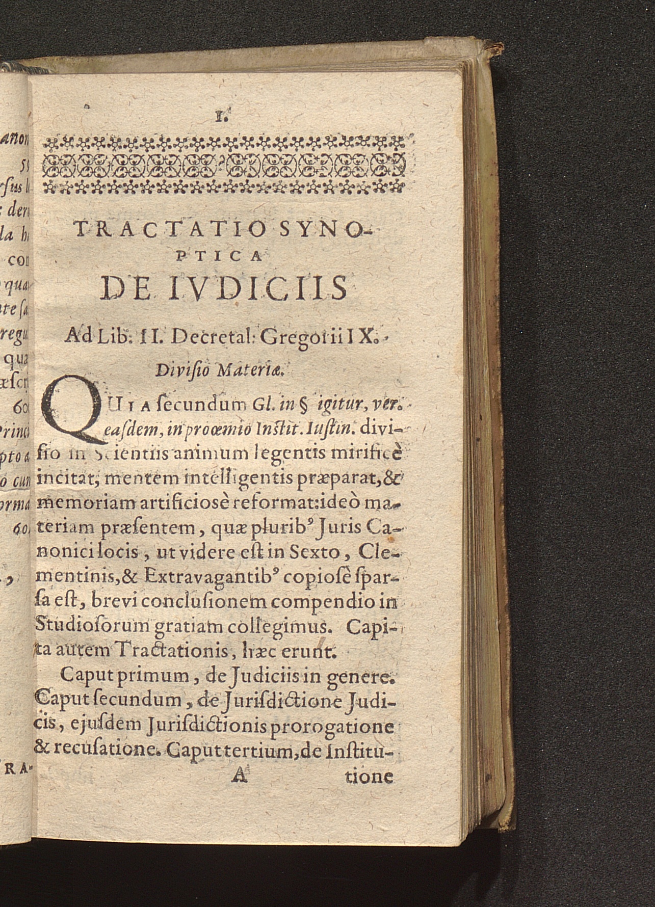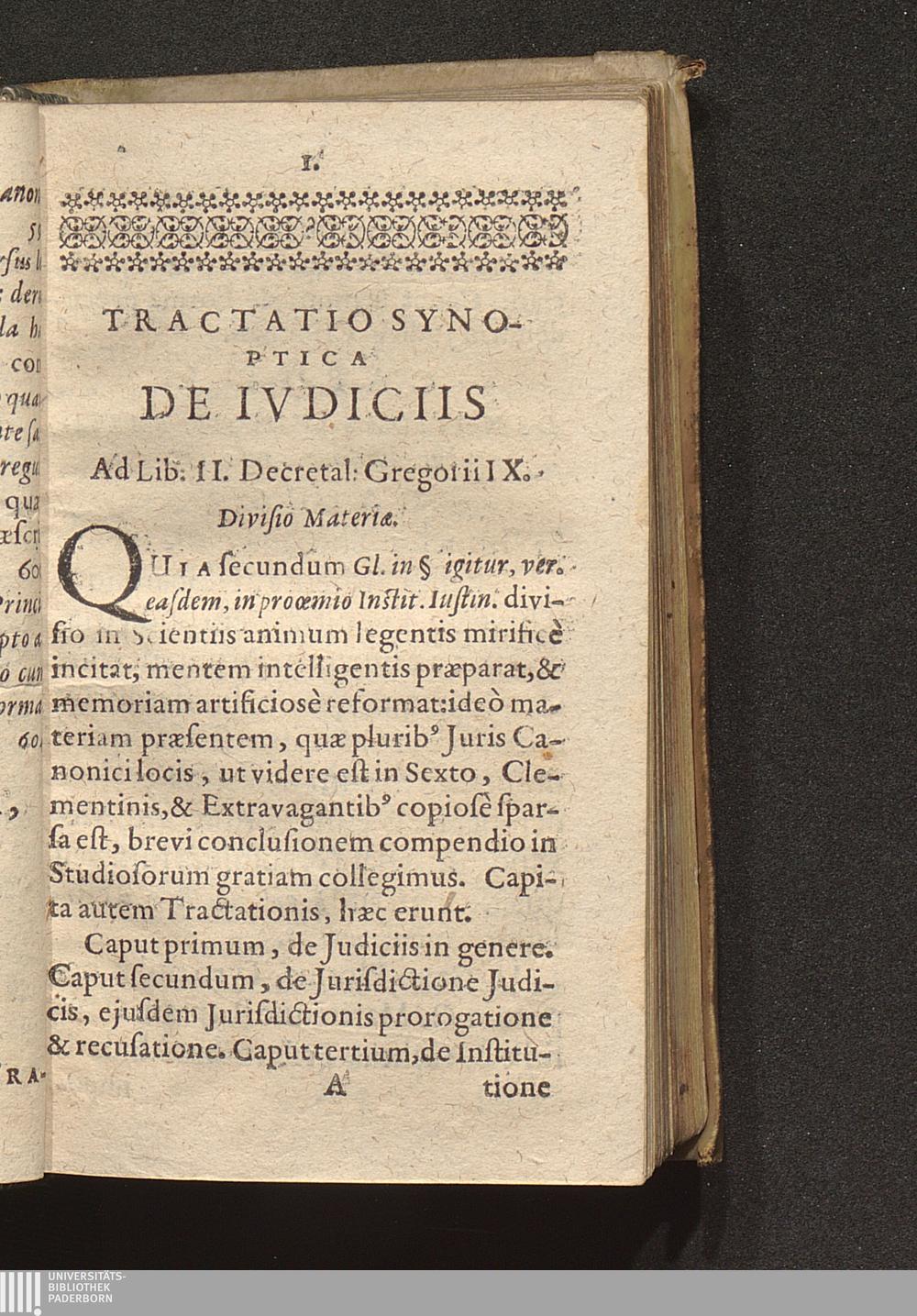 Tractatio Synoptica De Ivdiciis Ad Lib: II. Decretal: Gregorii IX. : Multorum cùm in Foro, tùm Academijs agentium, inprimis verò peregrè abeuntium desiderijs expetita ; Indice cum gemino, uno Capitum, Titulorum & Materiarum, altero Verborum notabilium / Quam antehâc Sub Praesidio R. P. Ferdinandi ab Herberstein è Soc: Iesu SS: Theol: Doctore, & in almâ Vniversitate Graecensi Publico Iuris Canonici Professore: Disquisitioni publicae exposuit Donatus Vincentius Tabarelli De Fatis, S. R. I. Eques, Dn: Jurisdictionis Numii, ac Castri Viguli, SS. Theol: Auditor emeritus, nec non eiusdem Universitatis Princeps Parthenius