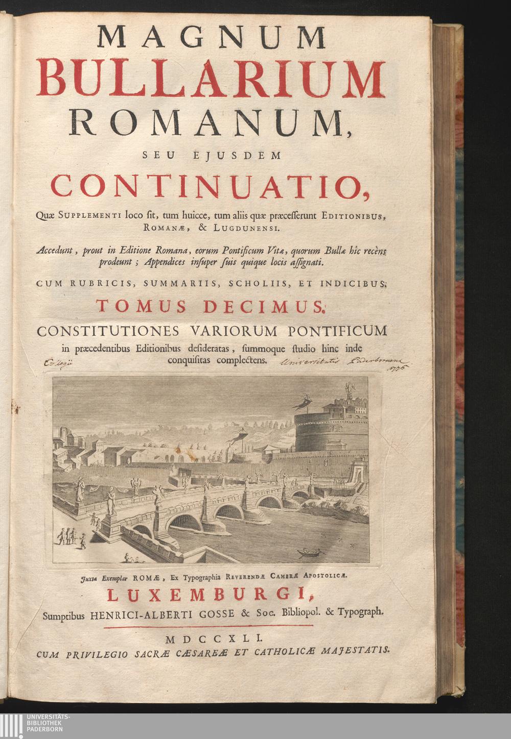 Tomus Decimus (1741) Constitutiones Variorum Pontificum in praecedentibus Editionibus desideratas, summoque studio hinc inde conquisitas complectens
