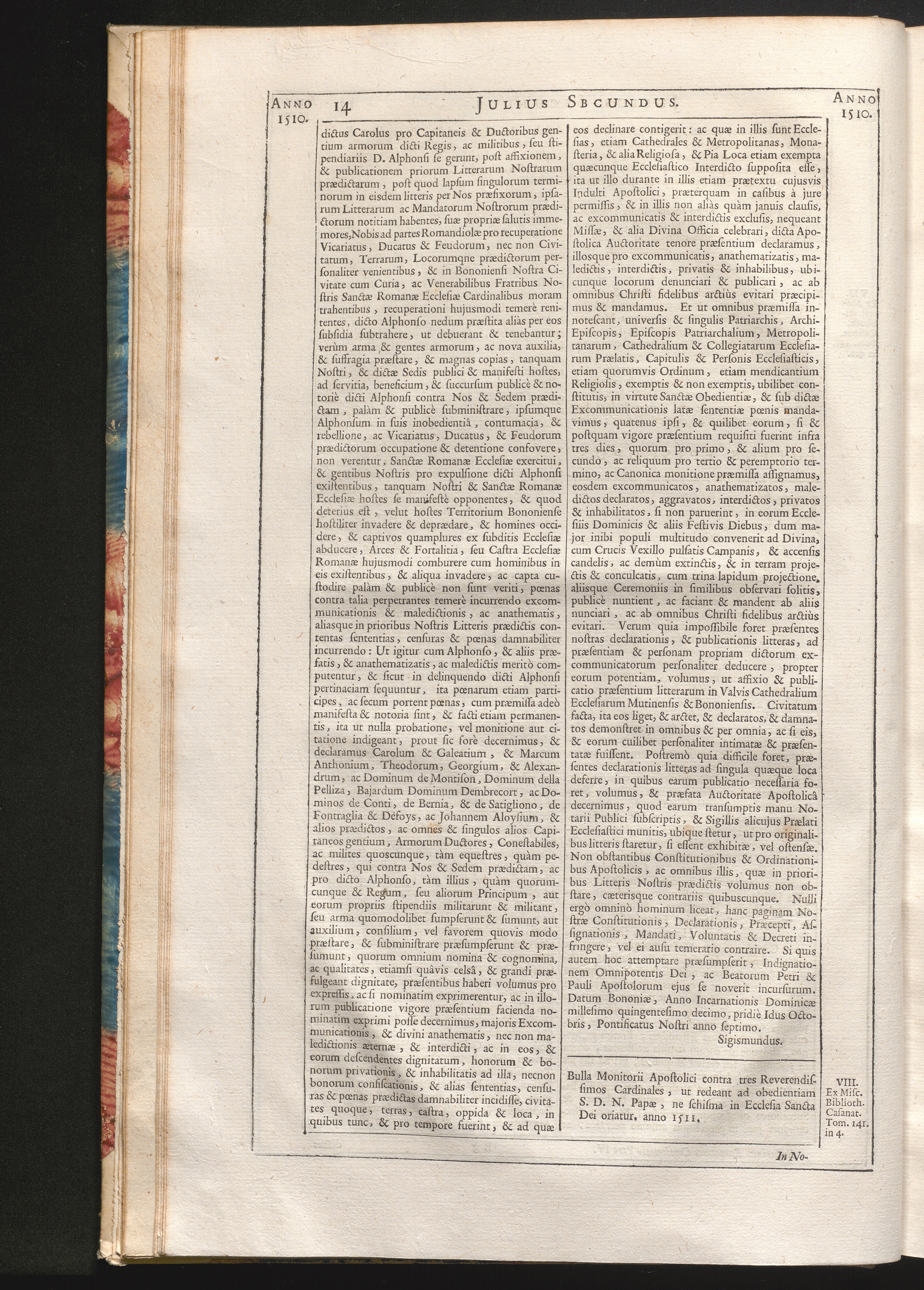 8. Cœlestis Altitudo, &c. Bulla Monitorii Apostolici contra tres Reverendissimos[...]