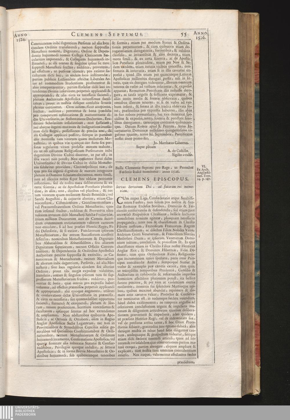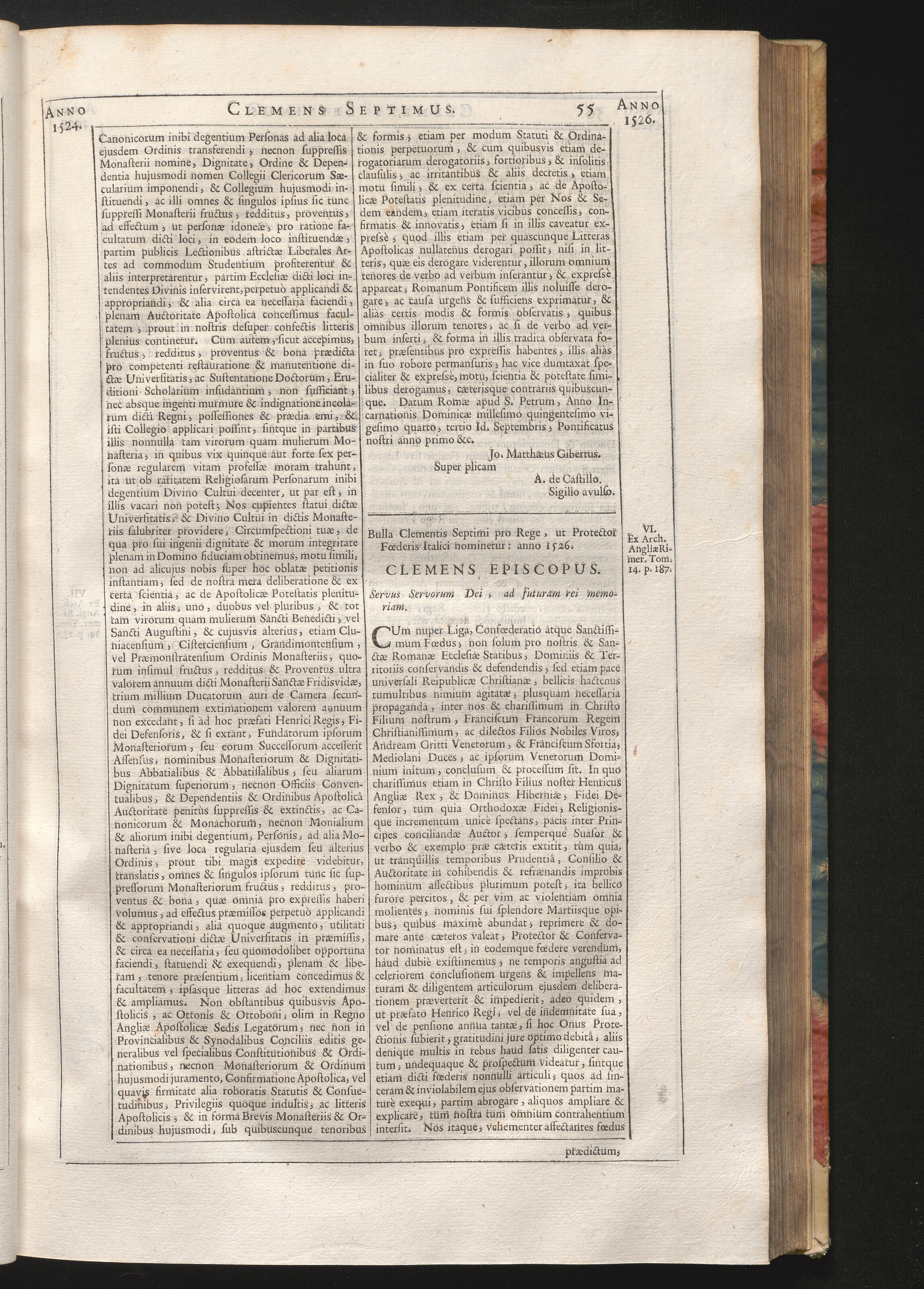 6. Cùm nuper, &c. Bulla Clementis Septimi pro Rege, ut Protector Fœderis Italici[...]