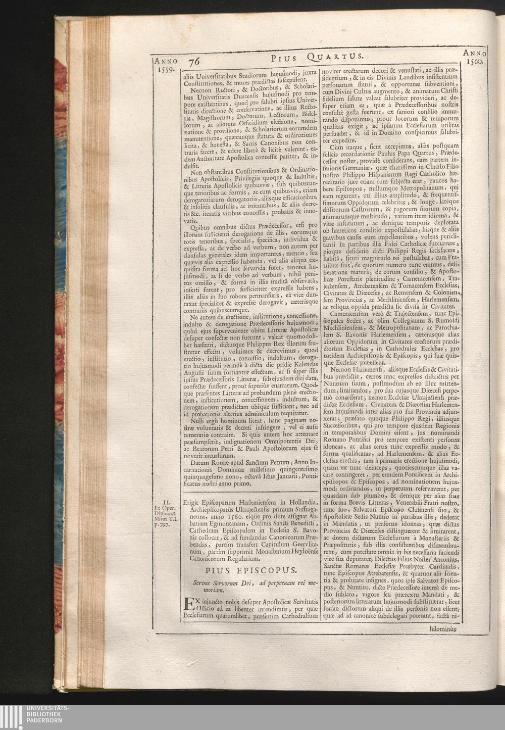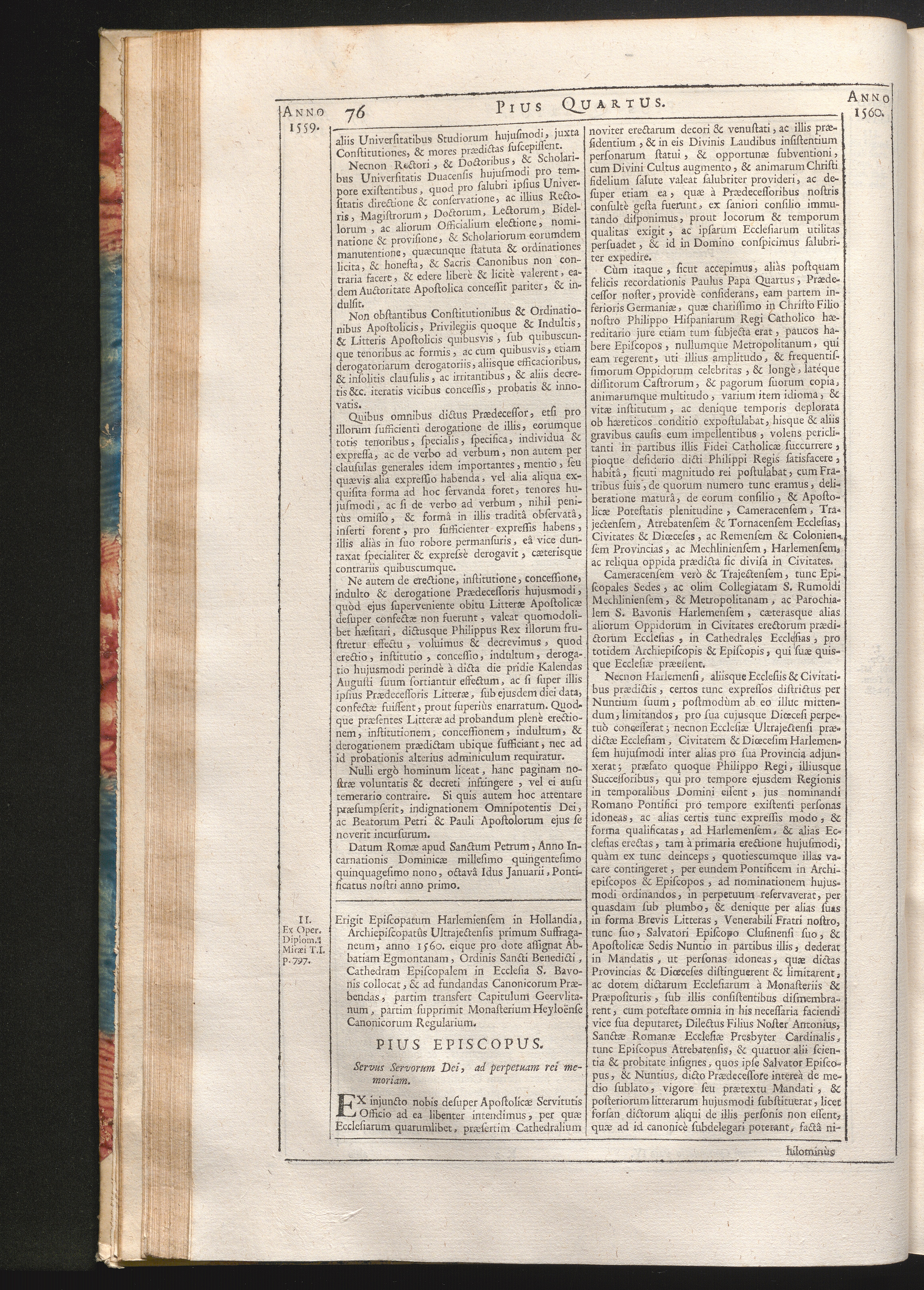 2. Ex injuncto nobis &c. Erigit Episcopatum Harlemiensem in Hollandia, Archiepiscopatûs[...]