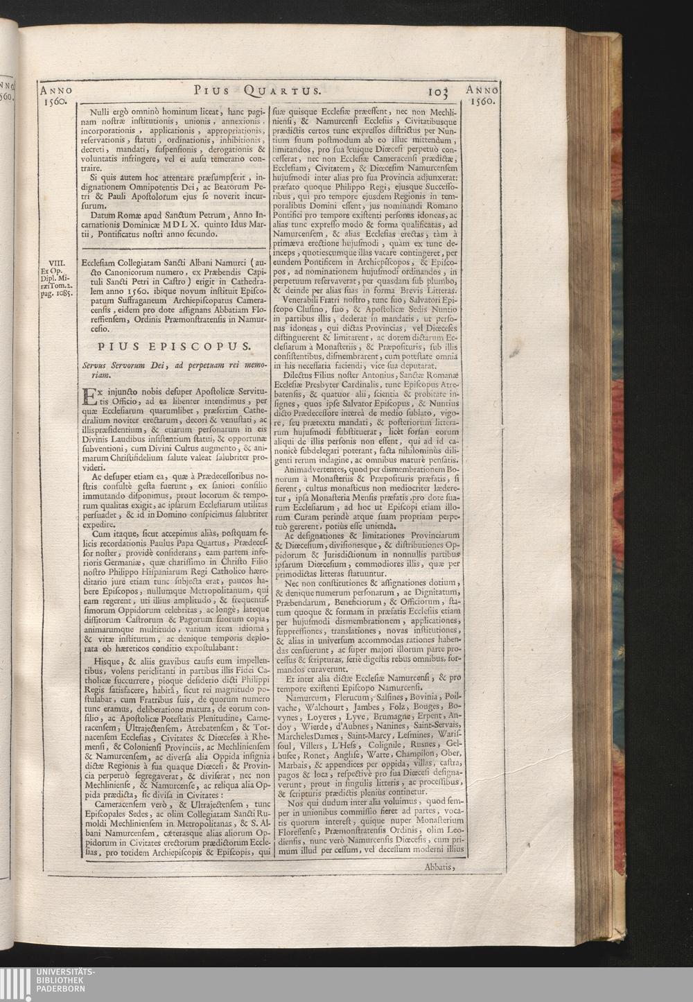 8. Ex injuncto, &c. Ecclesiam Collegiatam Sancti Albani Namurci (aucto Canonicorum[...]