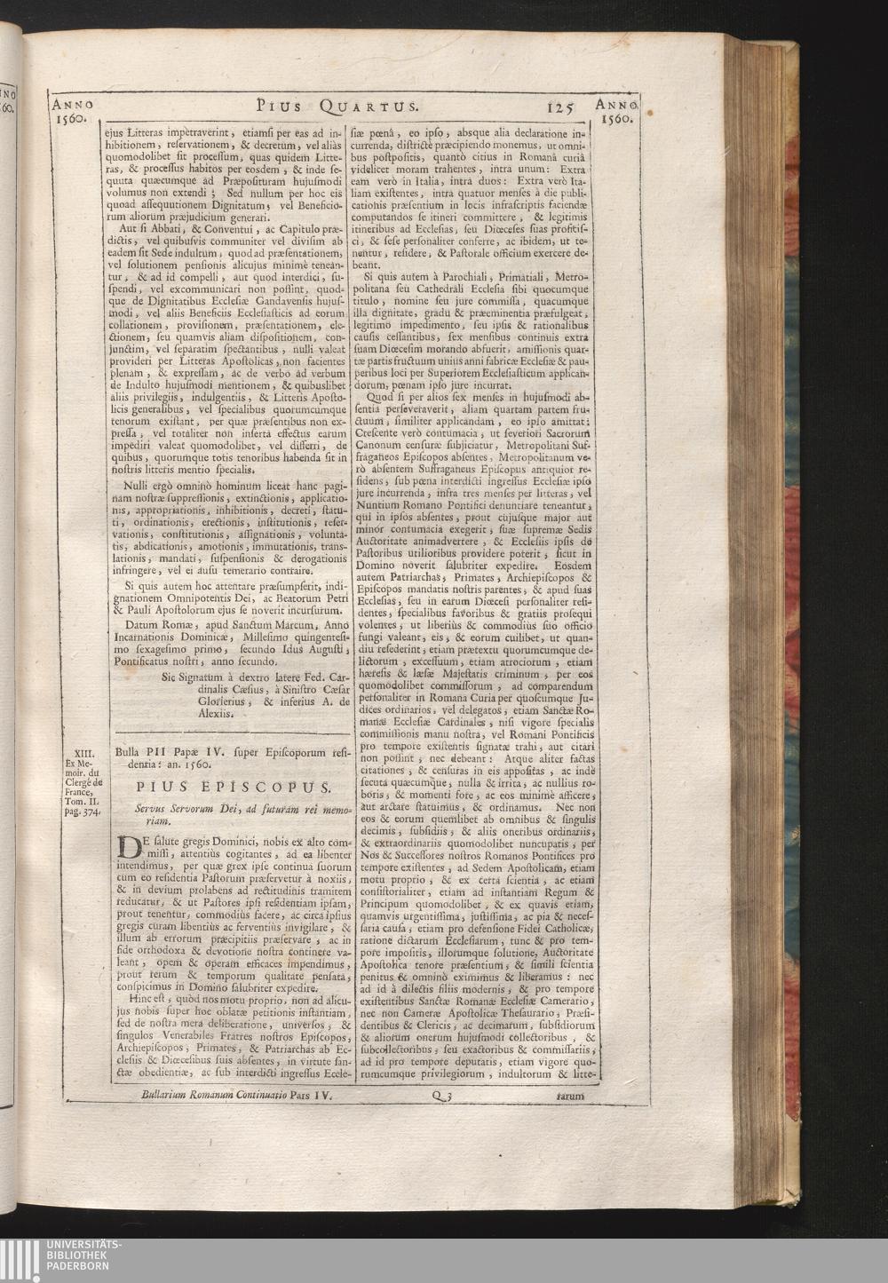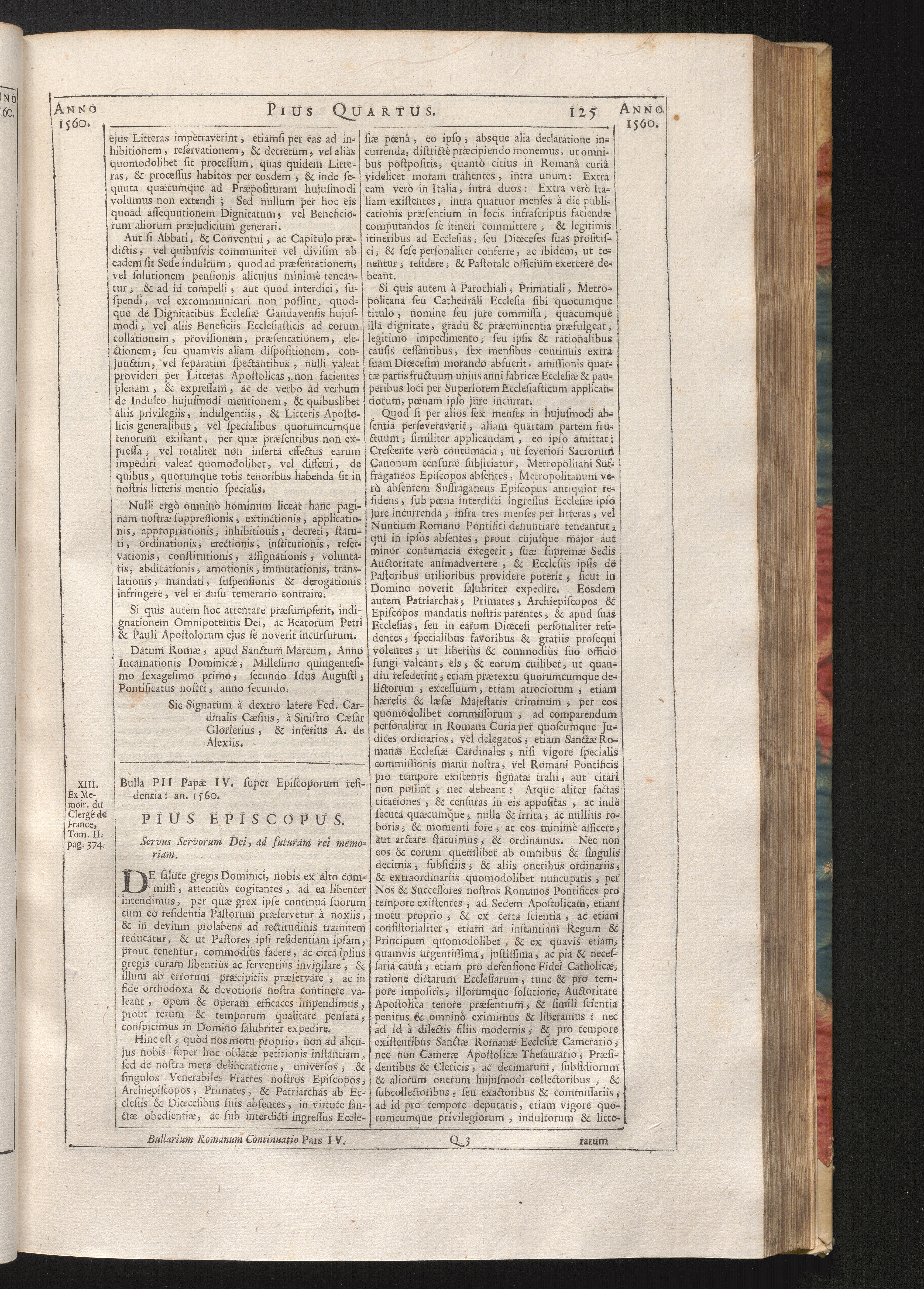 13. De salute, &c. Bulla PII IV. Super Episcoporum Residentia: anno 1560.