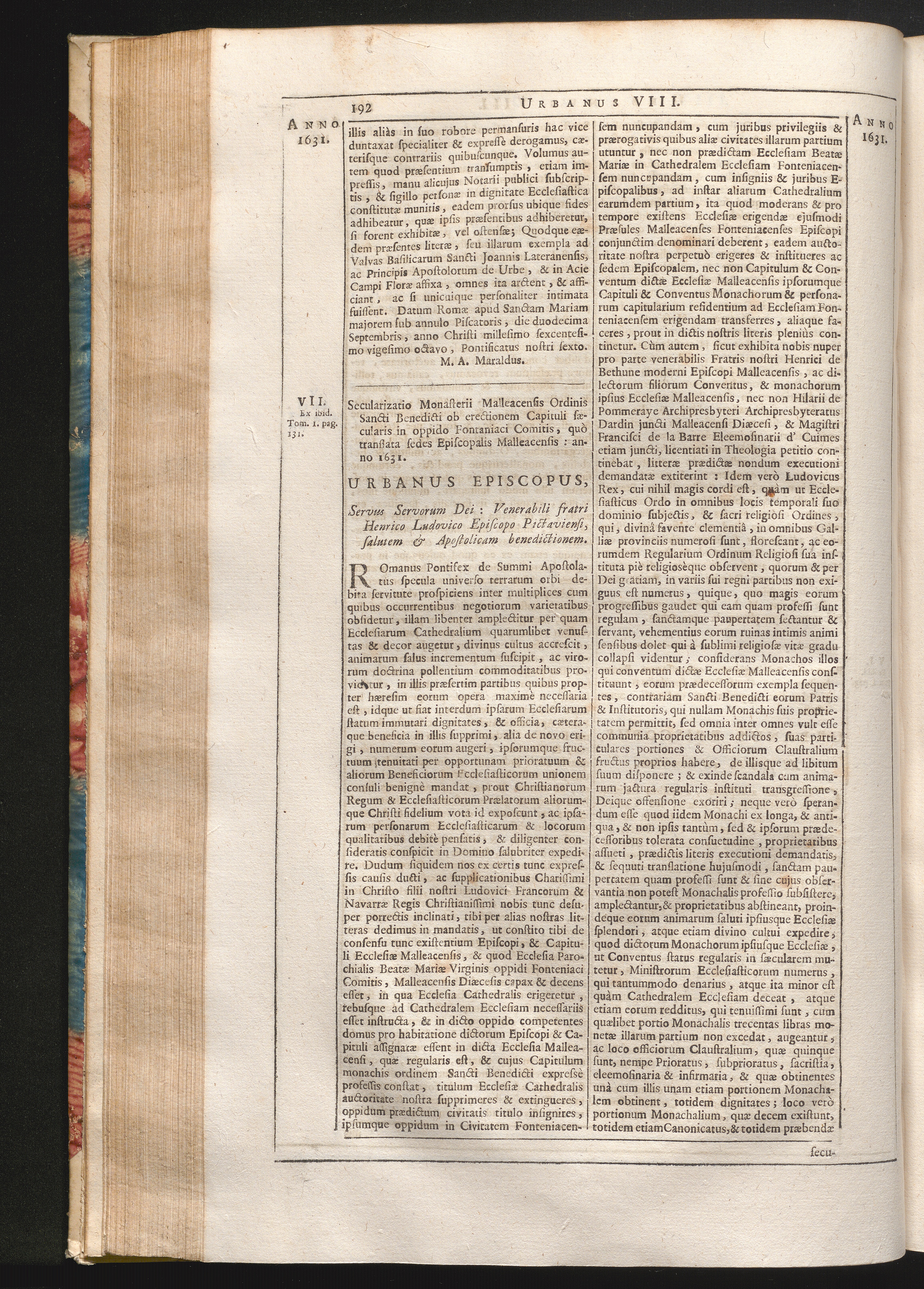 7. Romanus Pontifex &c. Secularizatio Monasterii Malleacensis Ordnis Sancti Benedicti[...]