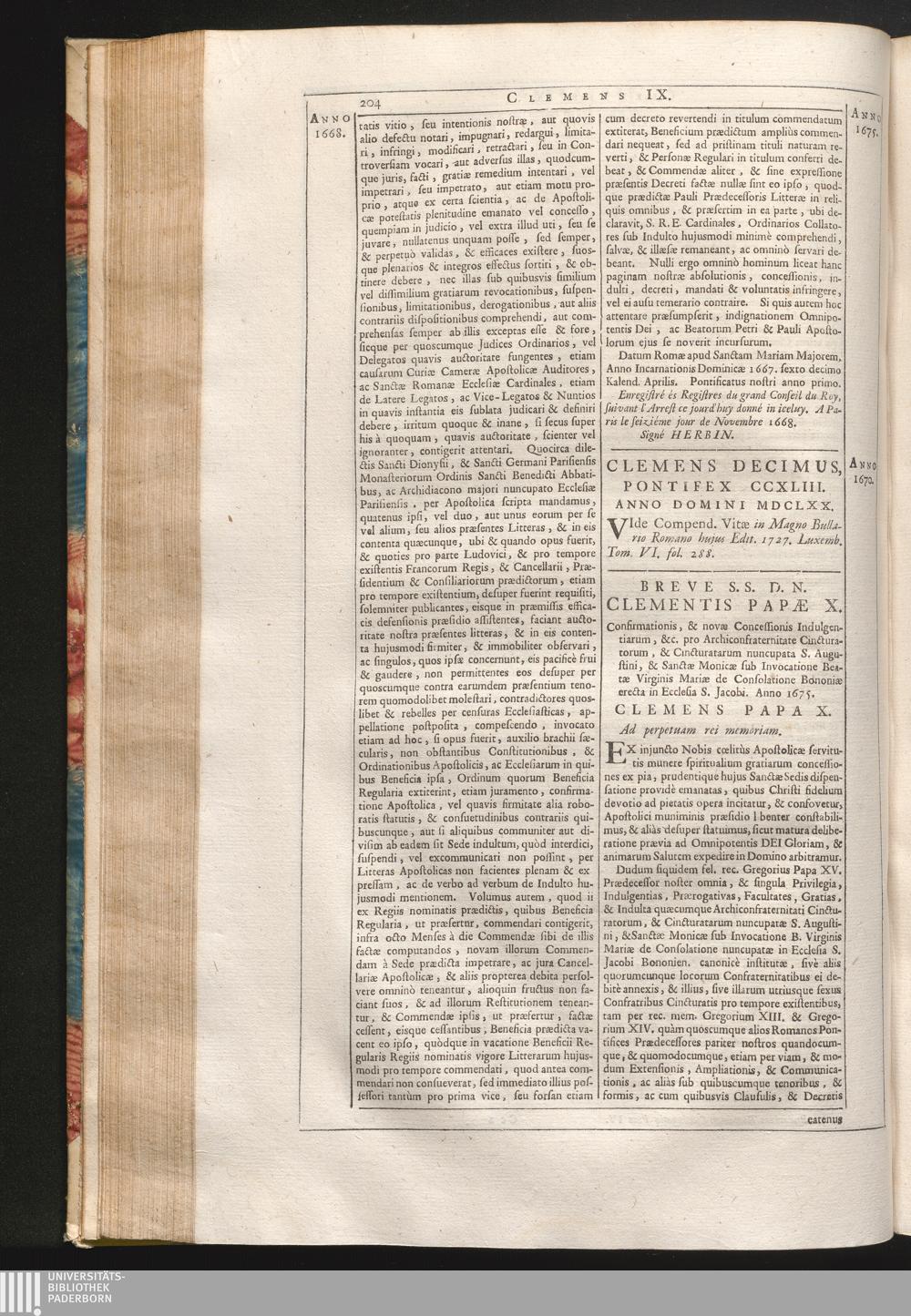 1. Ex injuncto, &c. Breve S.S.D.N. Clementis Papæ X. Confirmationis, & novæ Concessionis[...]