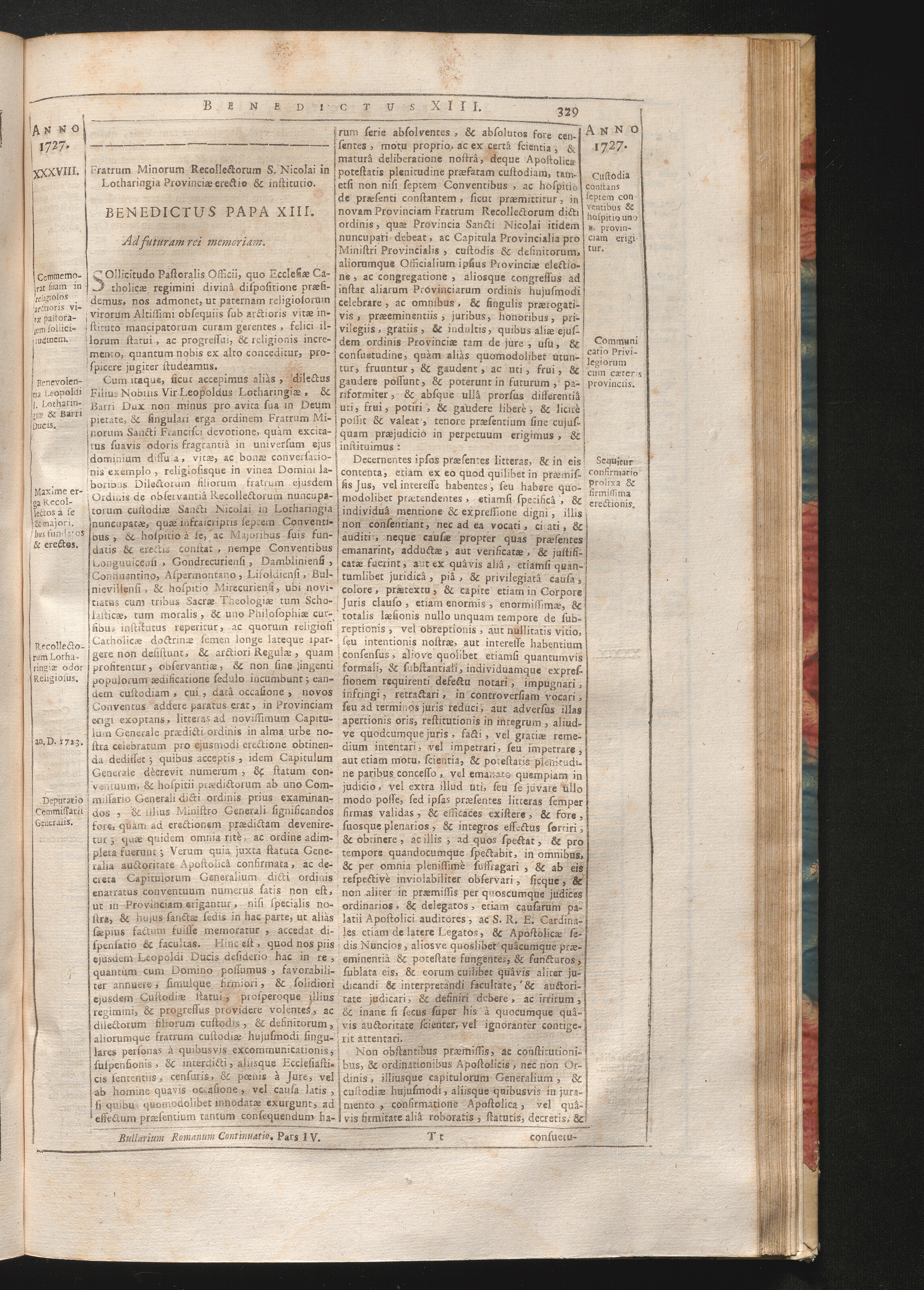38. Sollicitudo Pastoralis, &c. Fratrum Minorum Recollectorum S. Nicolai in Lotharingia[...]