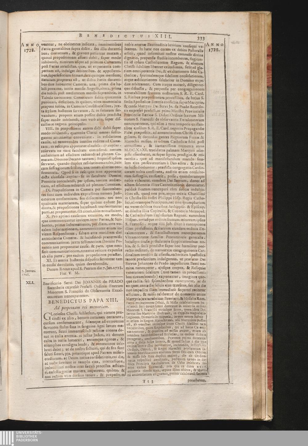 41. Gloriosos Christi, &c. Beatificatio Servi Dei Joannis de Prado Sacerdotis expressè[...]