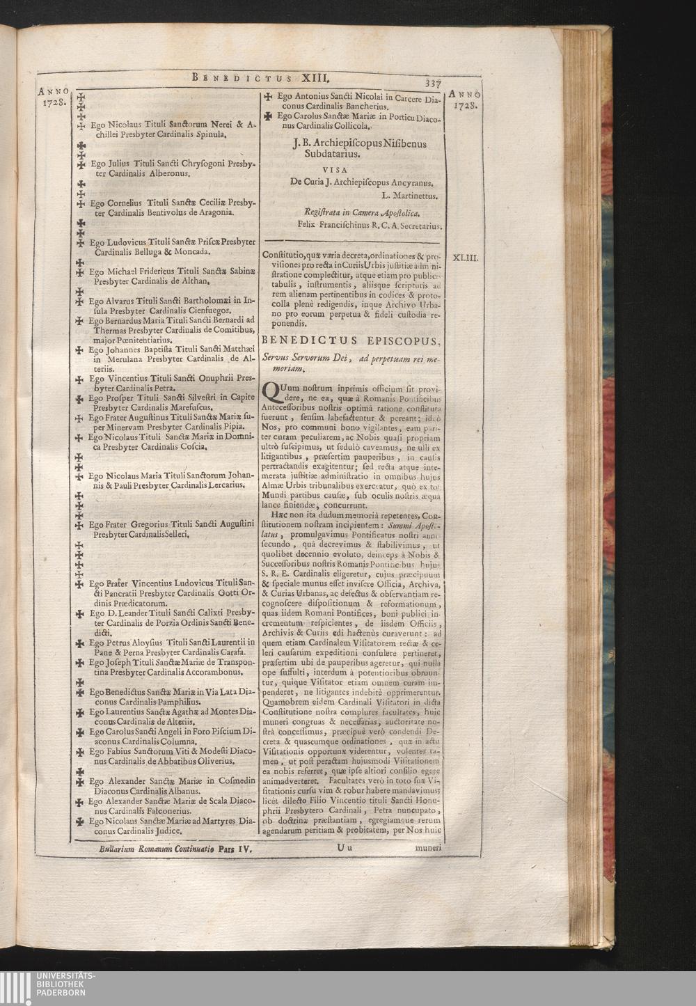 43. Quum nostrum, &c. Constitutio, quæ vaira decreta, ordinationes provisiones pro[...]