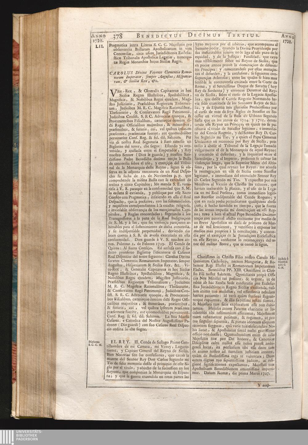52. Vice-Rex &c. Pragmatica juxta Literas S.C.C. Majestatis pro observantia Bullarum[...]
