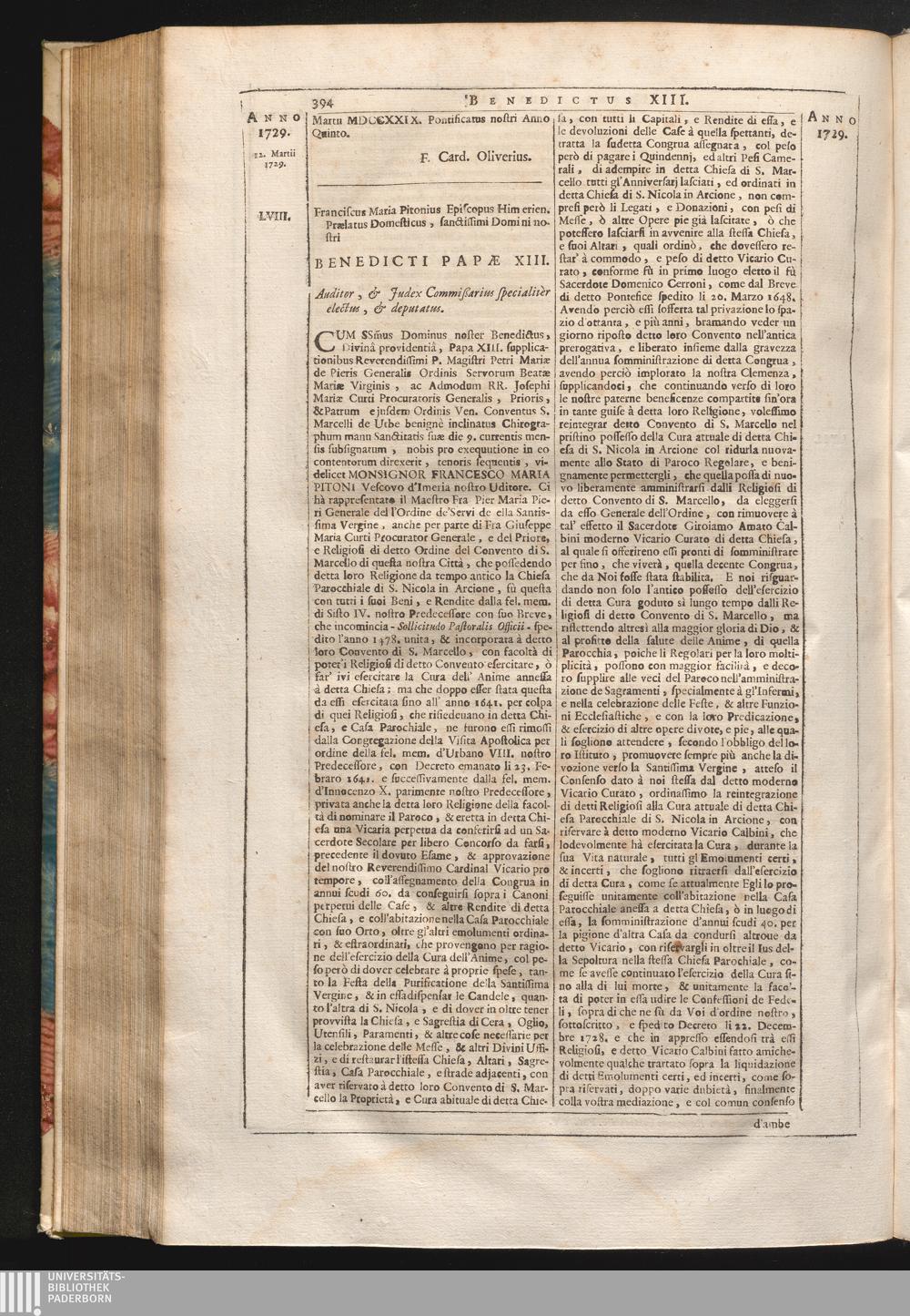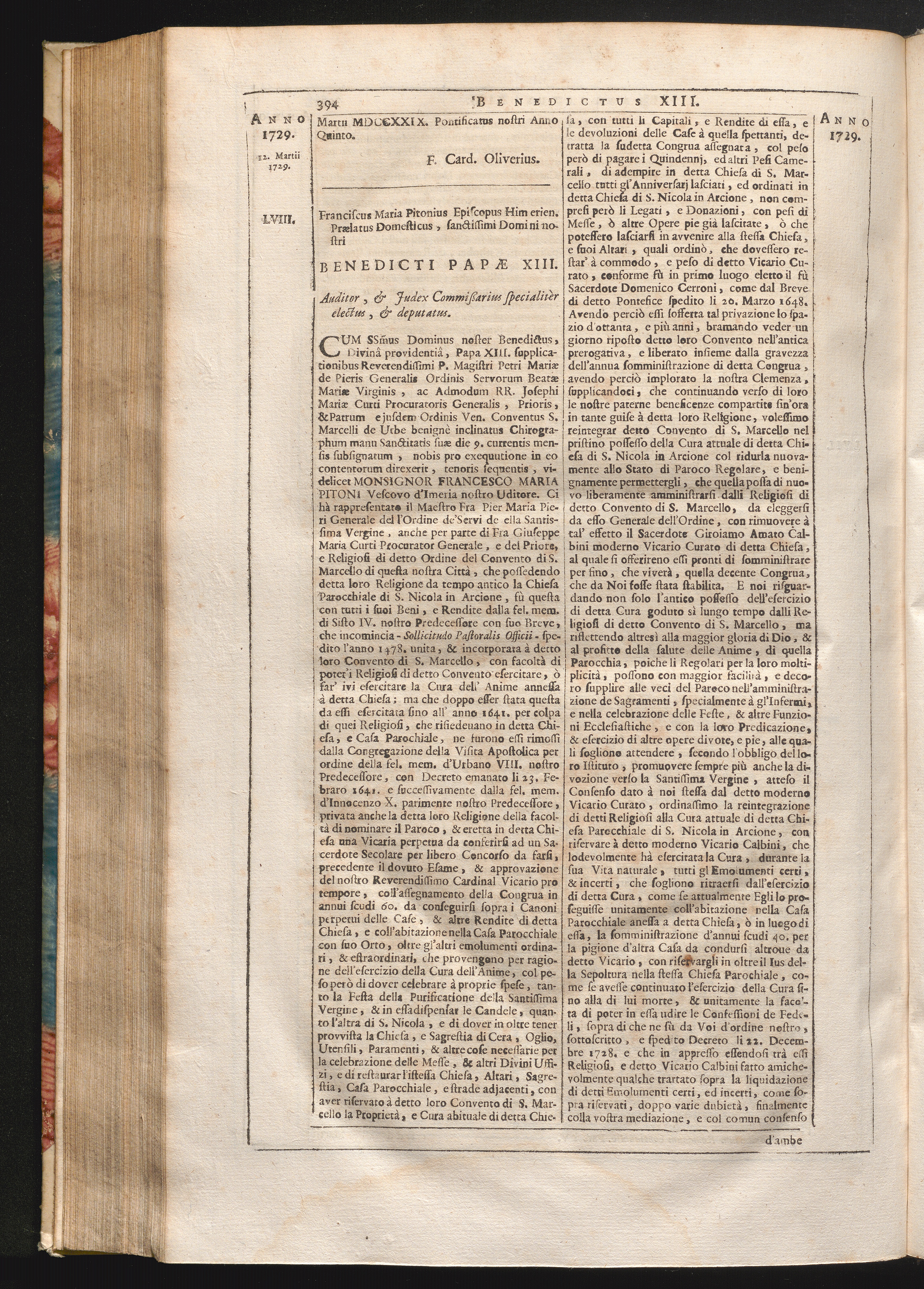 58. Cum sanctissimus Dominus &c. Franciscus Maria Pitonius Episcopus Himerien. Prælatus[...]