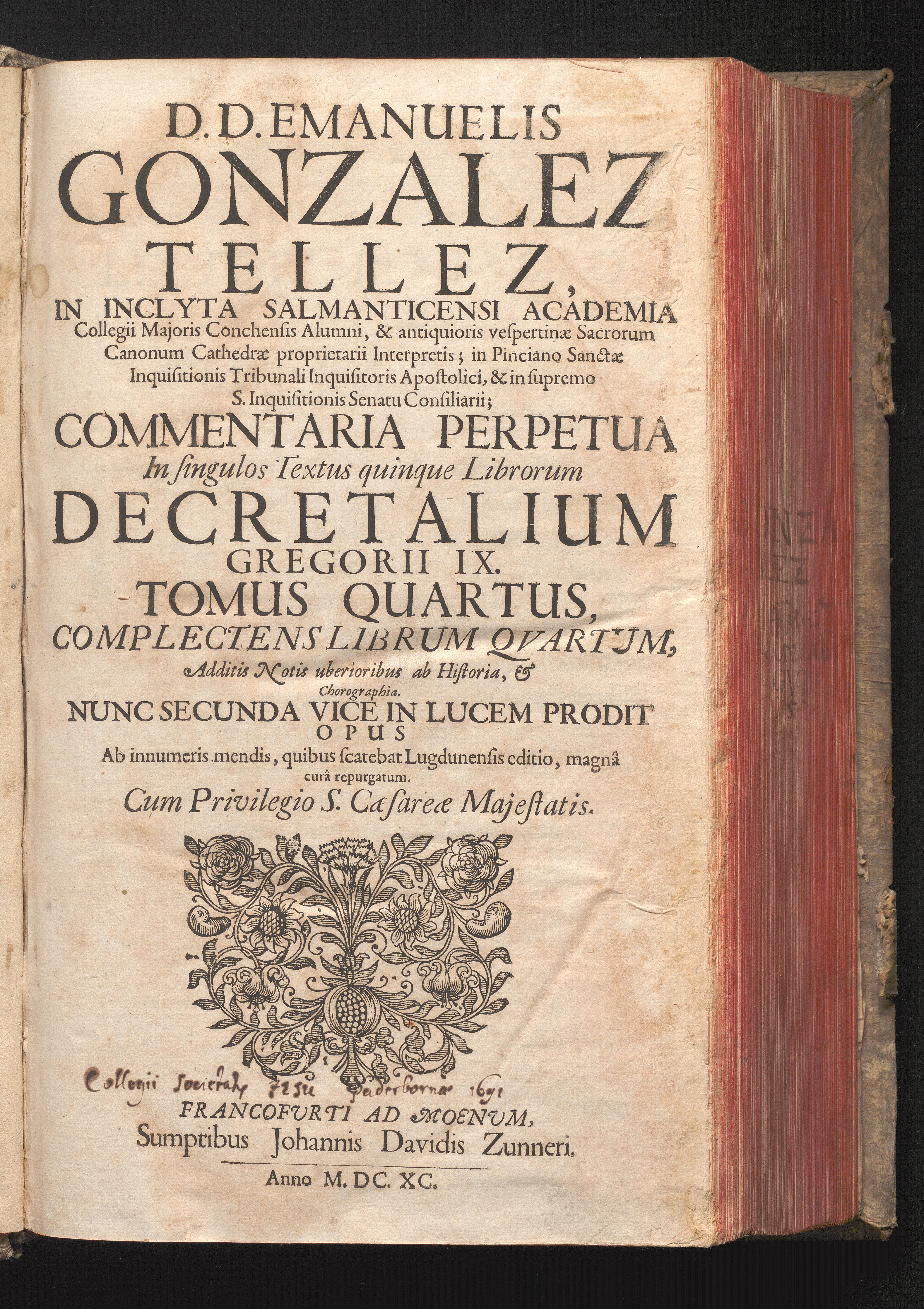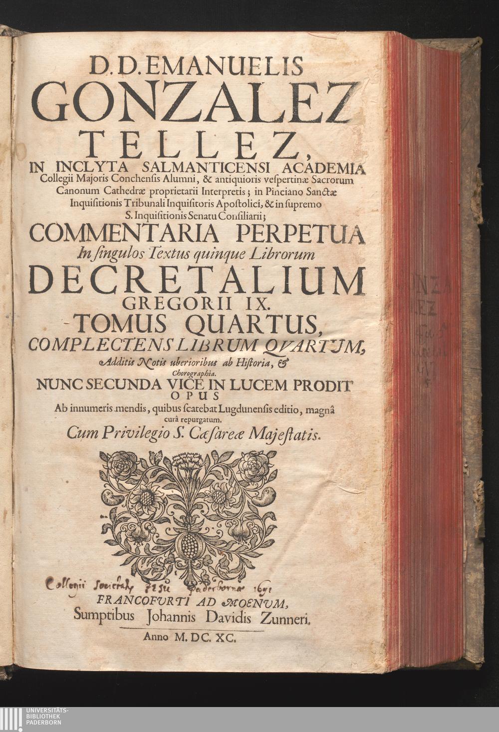 D. D. Emanuelis Gonzalez Tellez, In Inclyta Salmanticensi Academia Collegii Majoris[...]