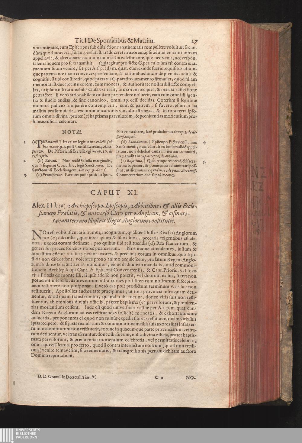Caput XI. Alex. III. (a) Archiepiscopo, Episcopis, Abbatibus, & aliis Ecclesiarum[...]
