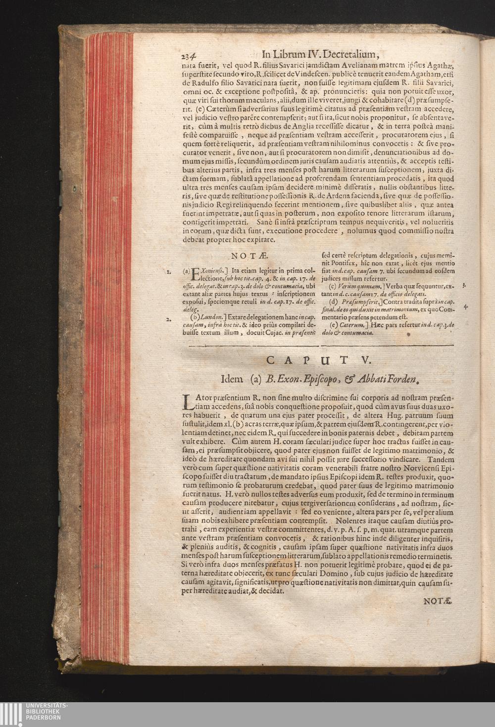 Caput V. Idem (a) B. Exon. Episcopo, & Abbati Forden.