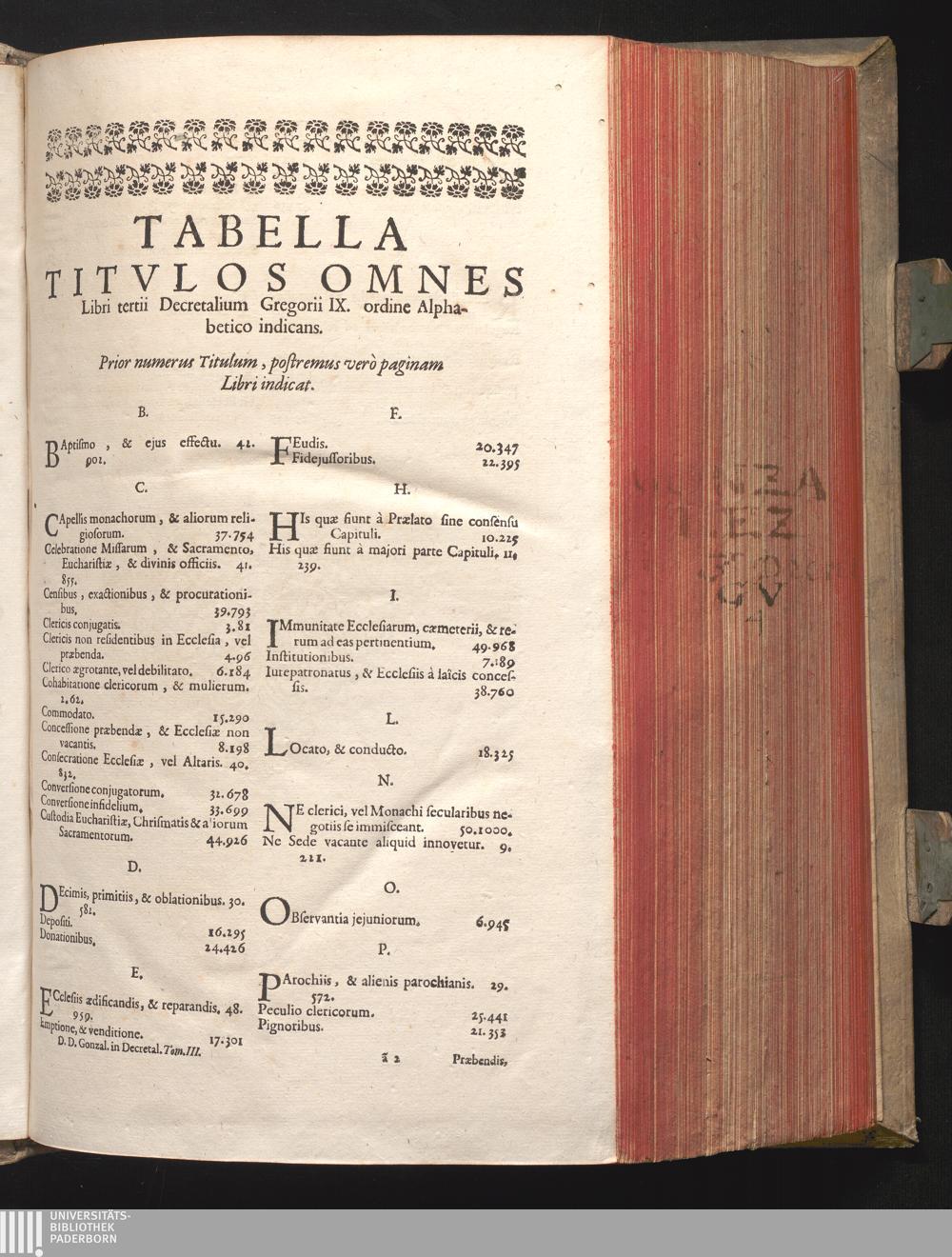 Tabella Titvlos Omnes Libri tertii Decretalium Gregorii IX. ordine Alphabetico i[...]