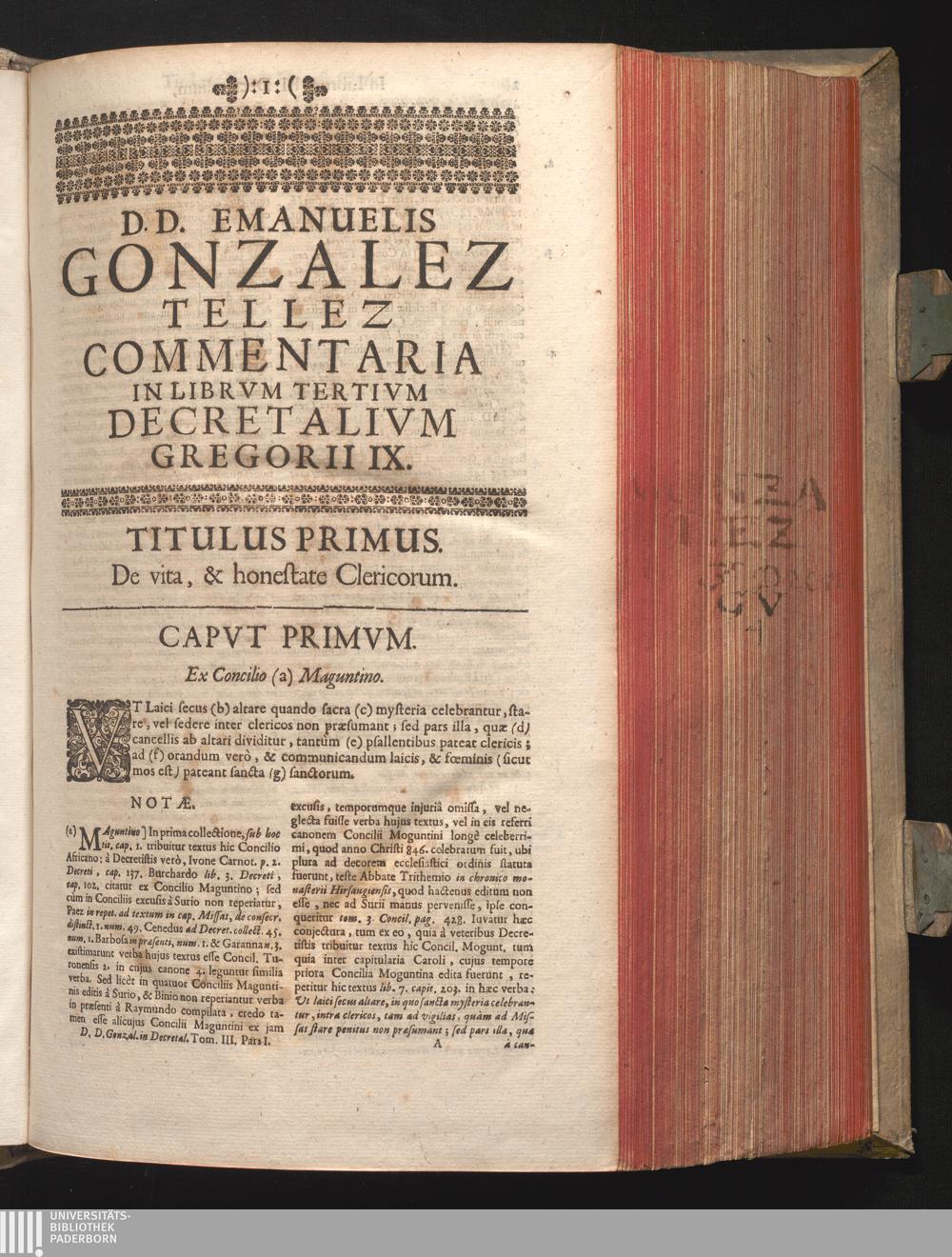 D.D. Emanuelis Gonzalez Tellez Commentaria In Librvm Tertivm Decretalivm Gregorii[...]