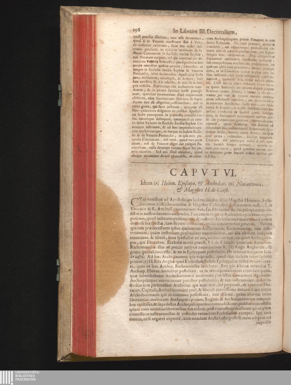 Capvt VI. Idem (a) Helien. Episcopo, & Archidiac. (b) Norantomiæ, & Magistro H. de[...]