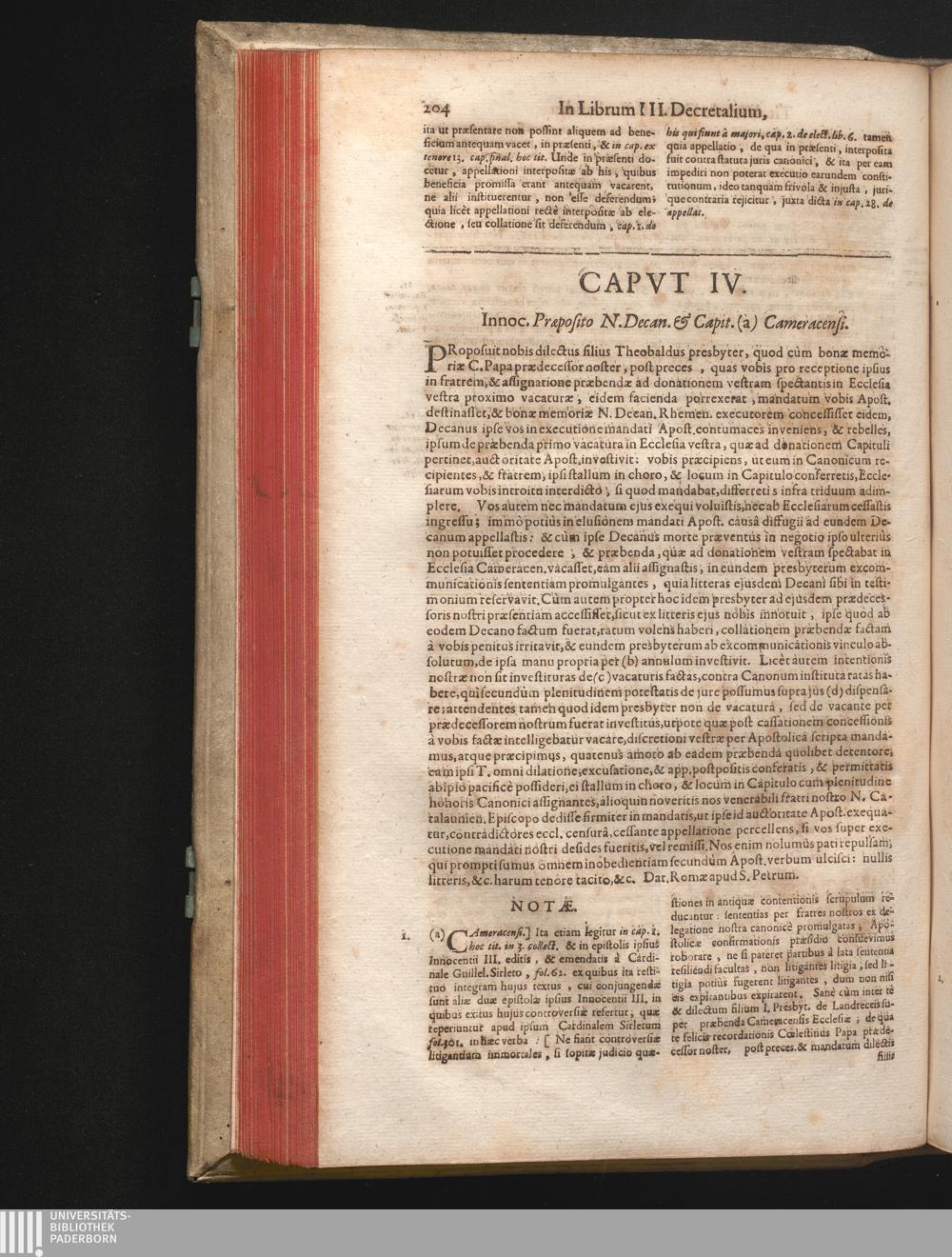 Capvt IV. Innoc. Præposito N. Decan. & Capit. (a) Cameracensi.