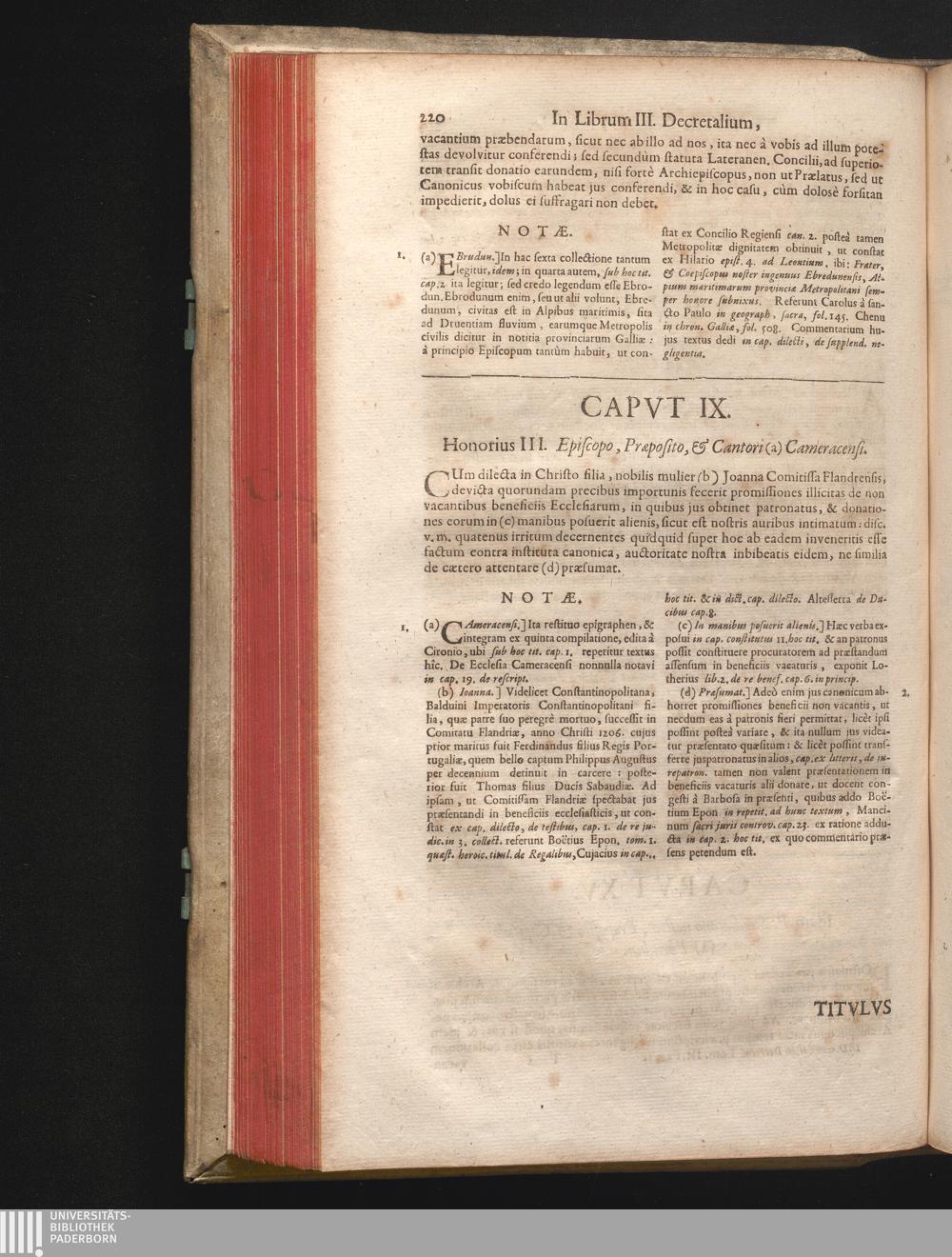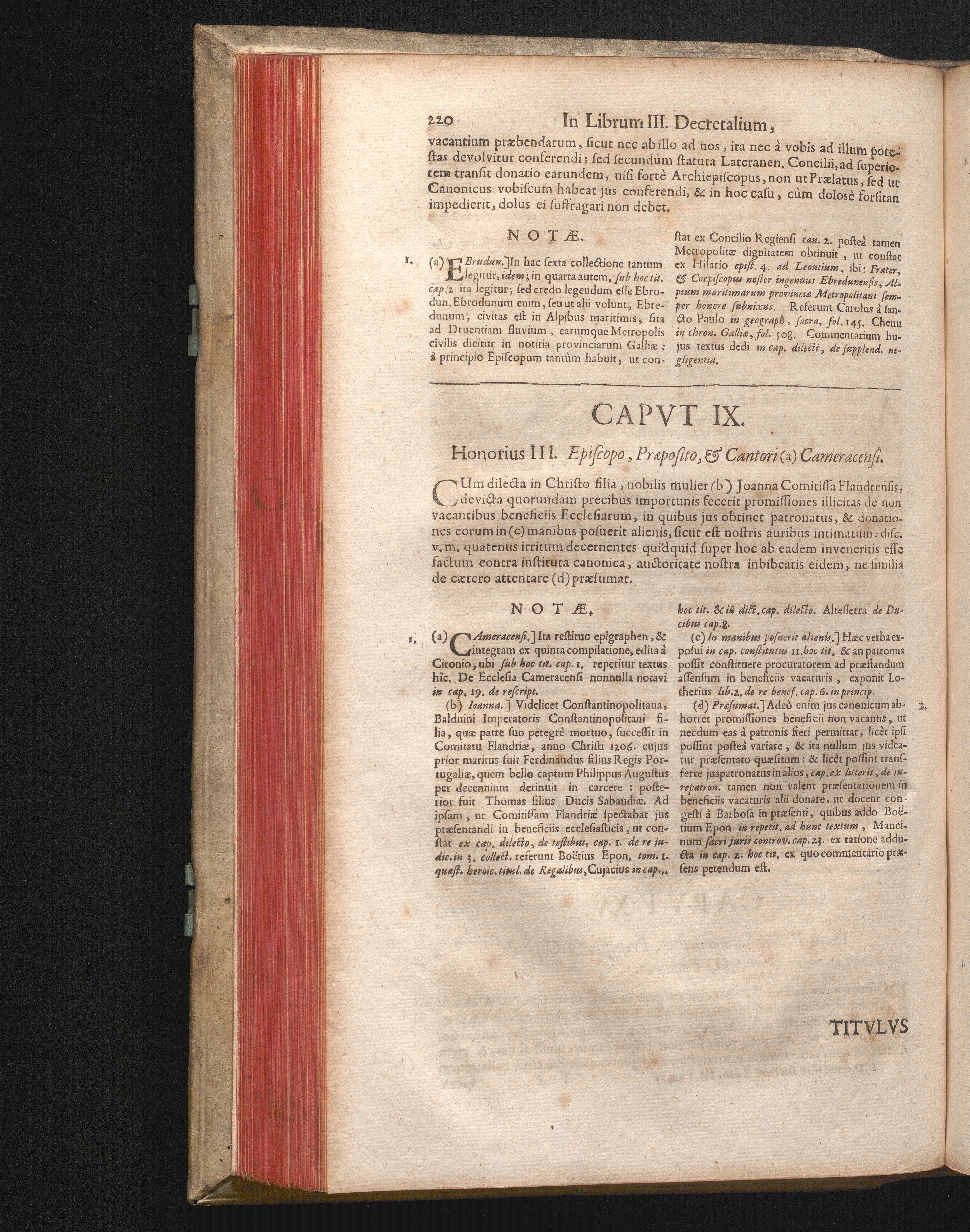 Capvt IX. [i.e. XVI.] Honorius III. Episcopo, Præposito, & Cantori (a) Cameracen[...]