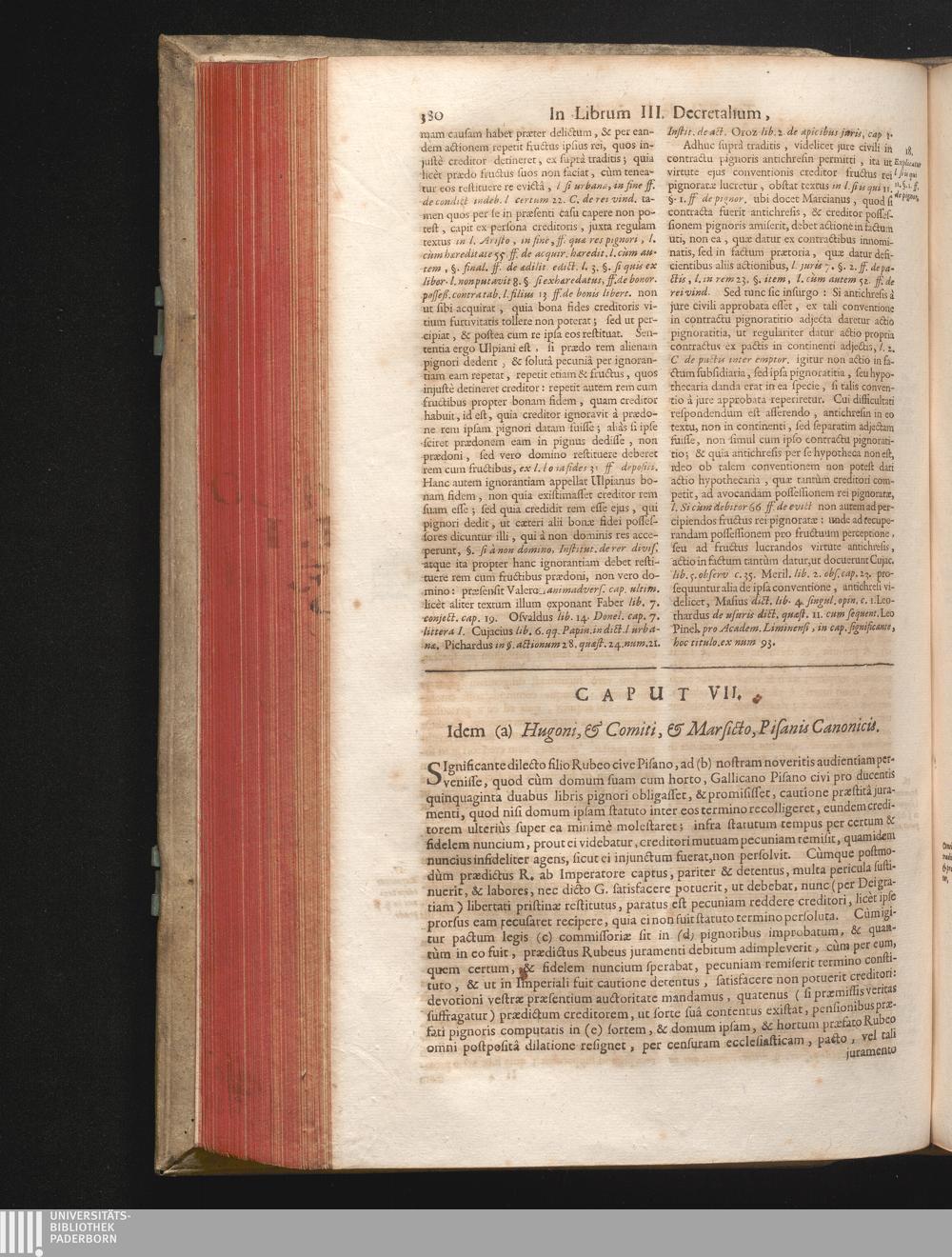 Caput VII. Idem (a) Hugoni, & Comiti, & Marsicto, Pisanis Canonicis.