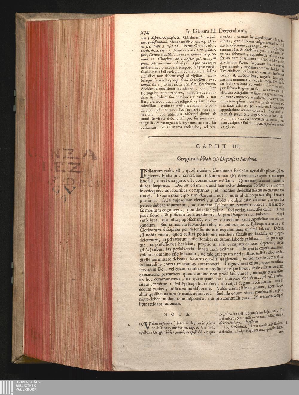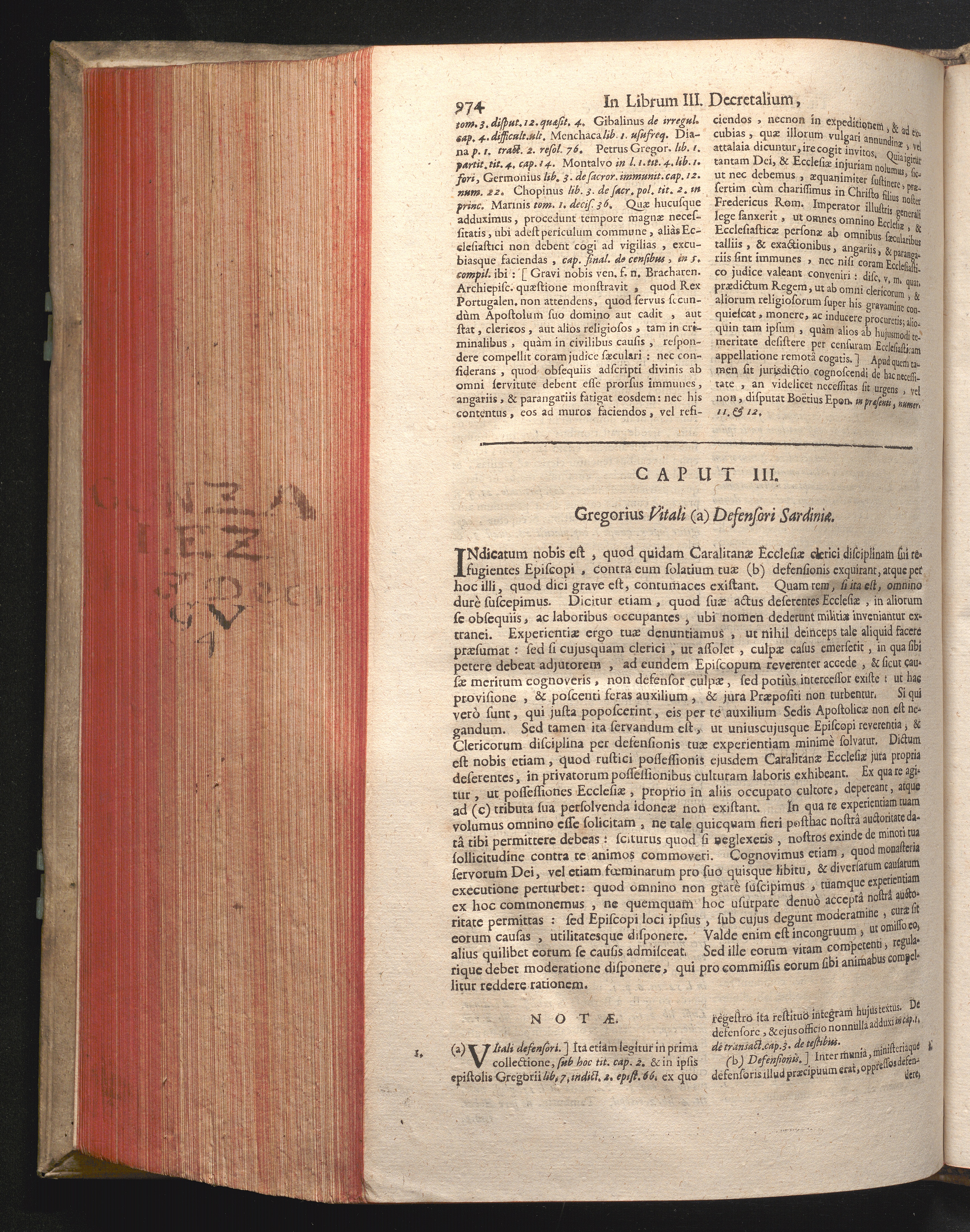 Caput III. Gregorius Vitali (a) Defensori Sardiniæ.