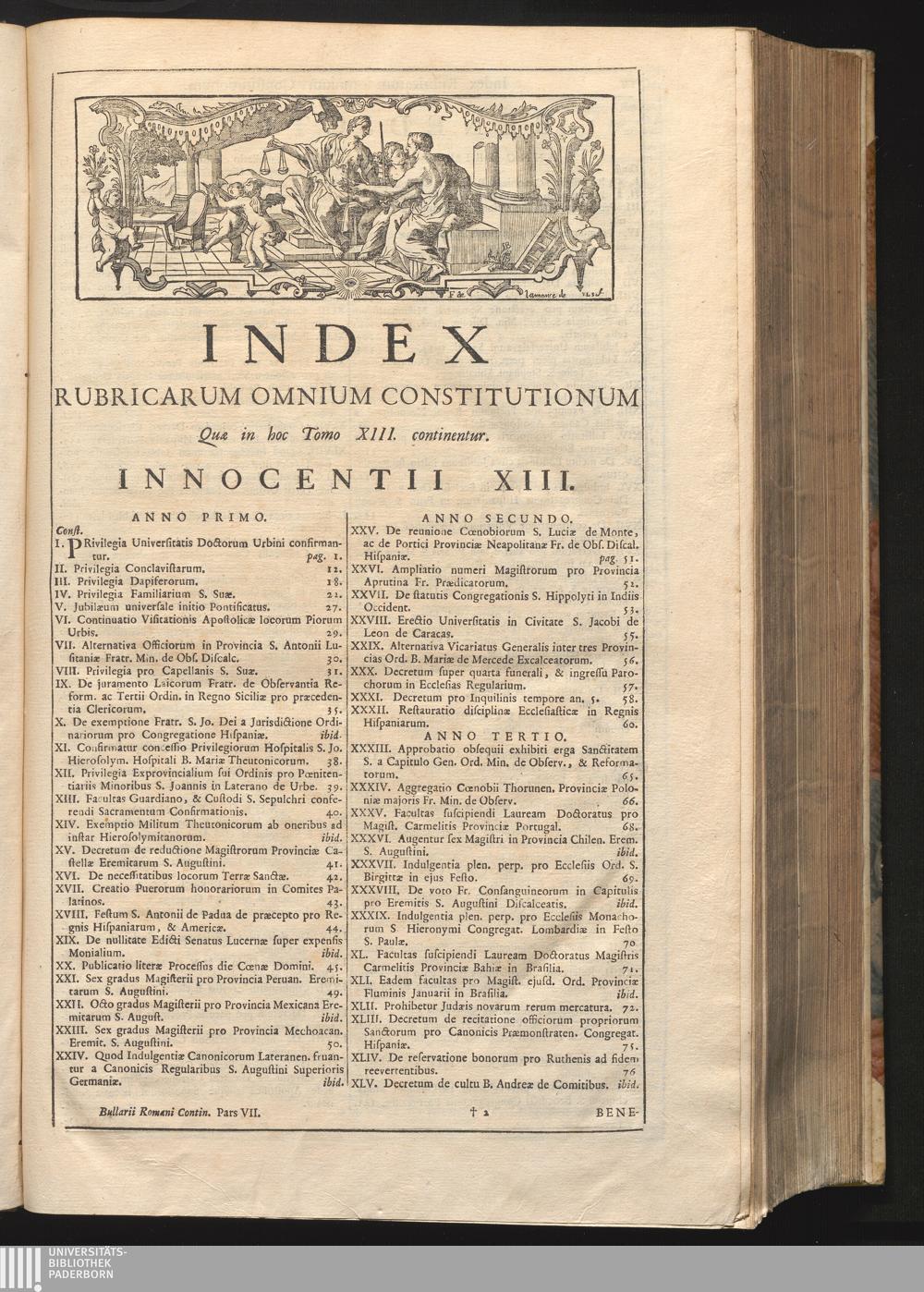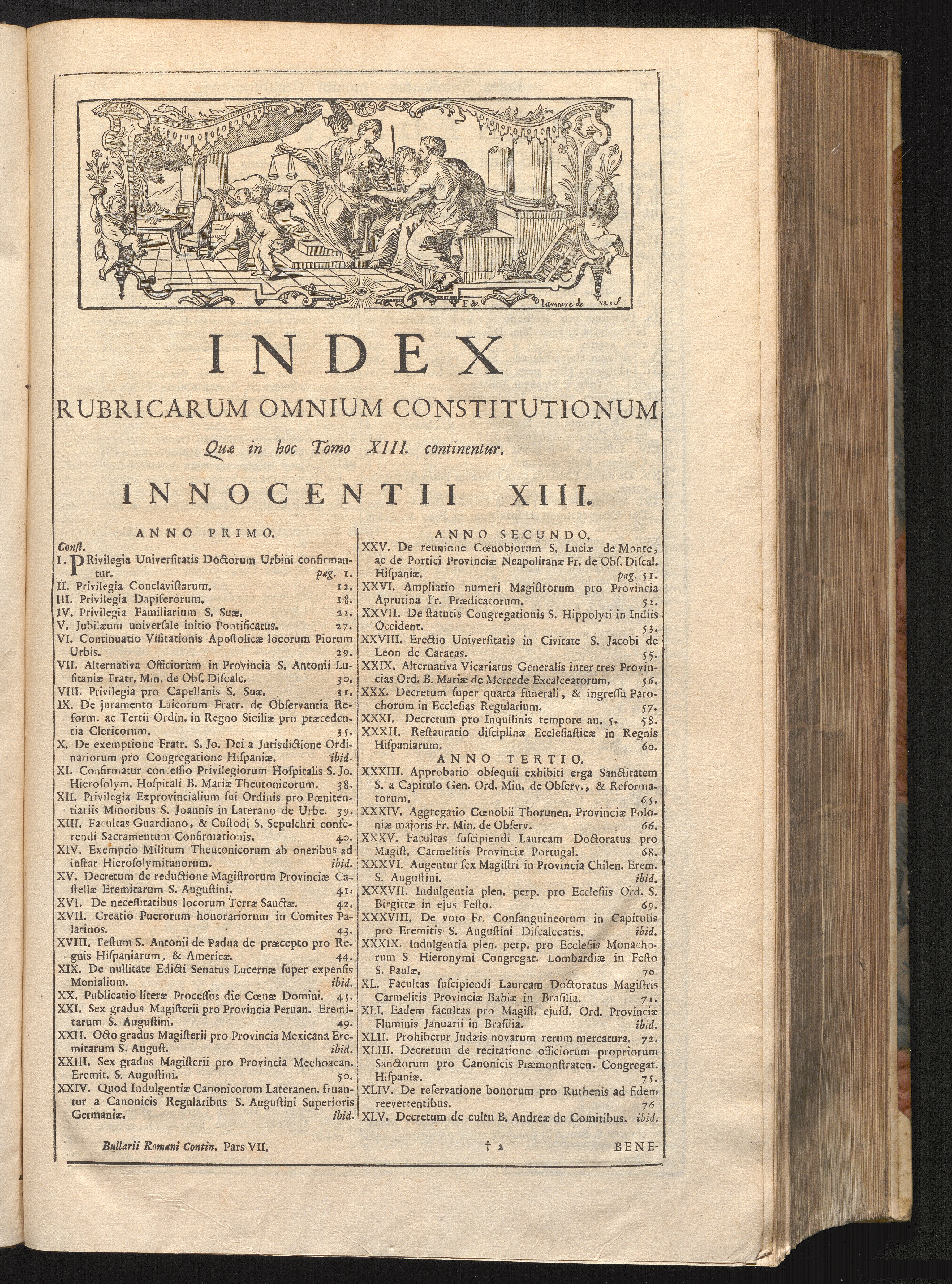 Tomus Decimus-Tertius = Continuationis Pars VII (1740) Complectens Constitutiones ab Innocentio XIII. & Benedicto XIII. editas