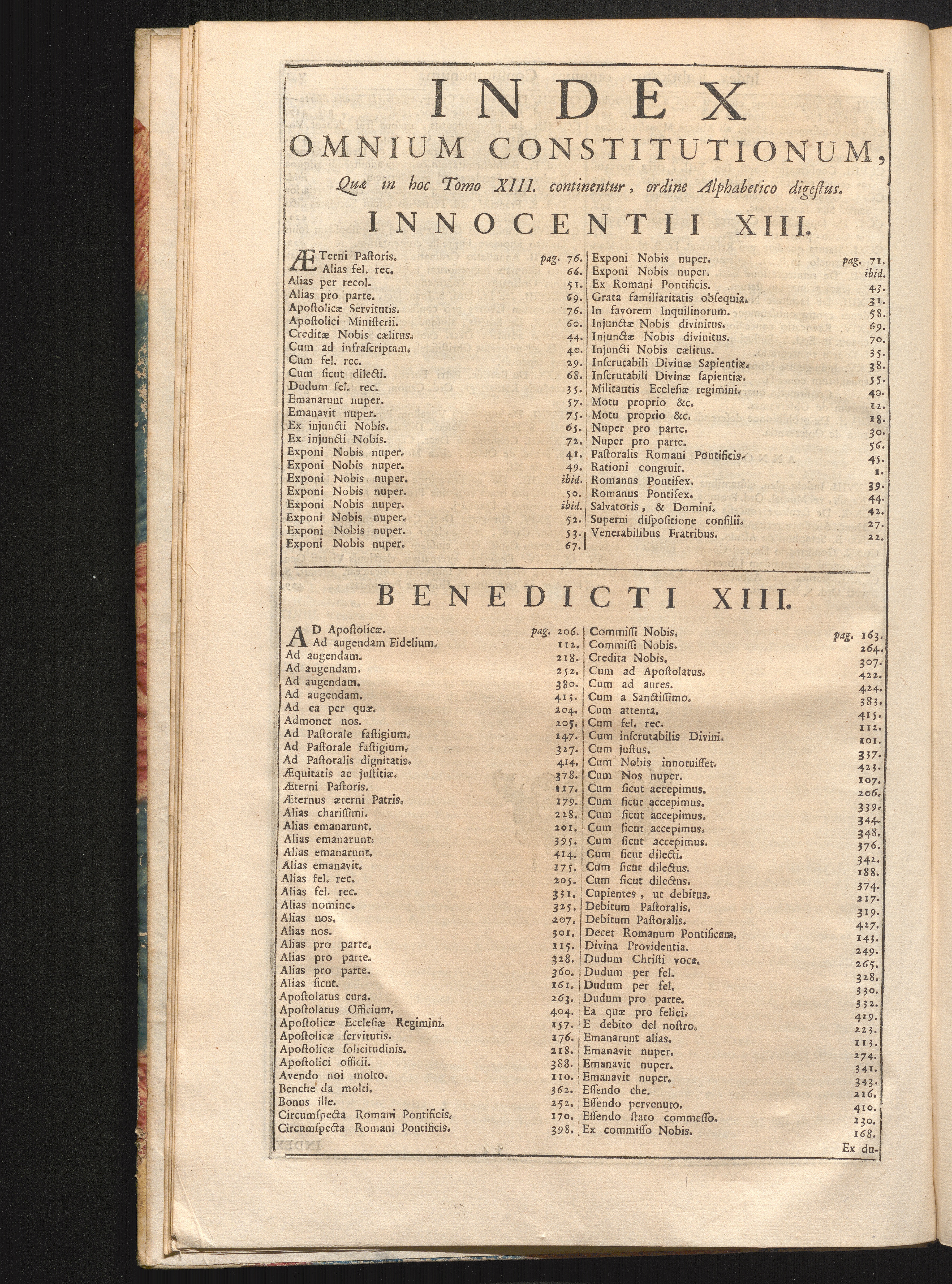 Index Omnium Constitutionum, Quæ in hoc Tomo XIII. continentur, ordine Alphabetico[...]