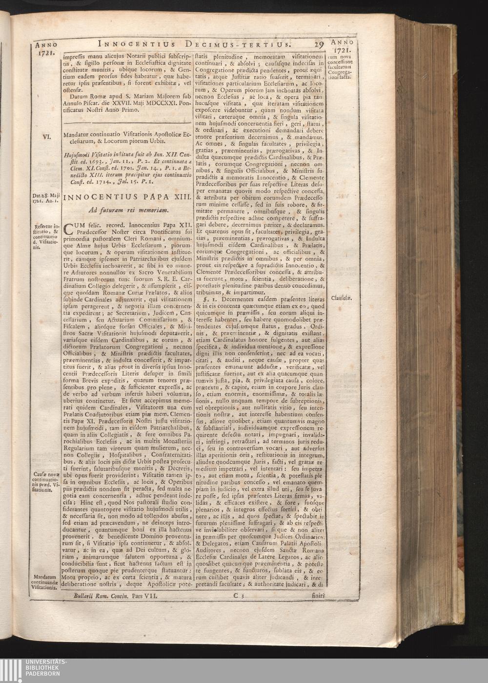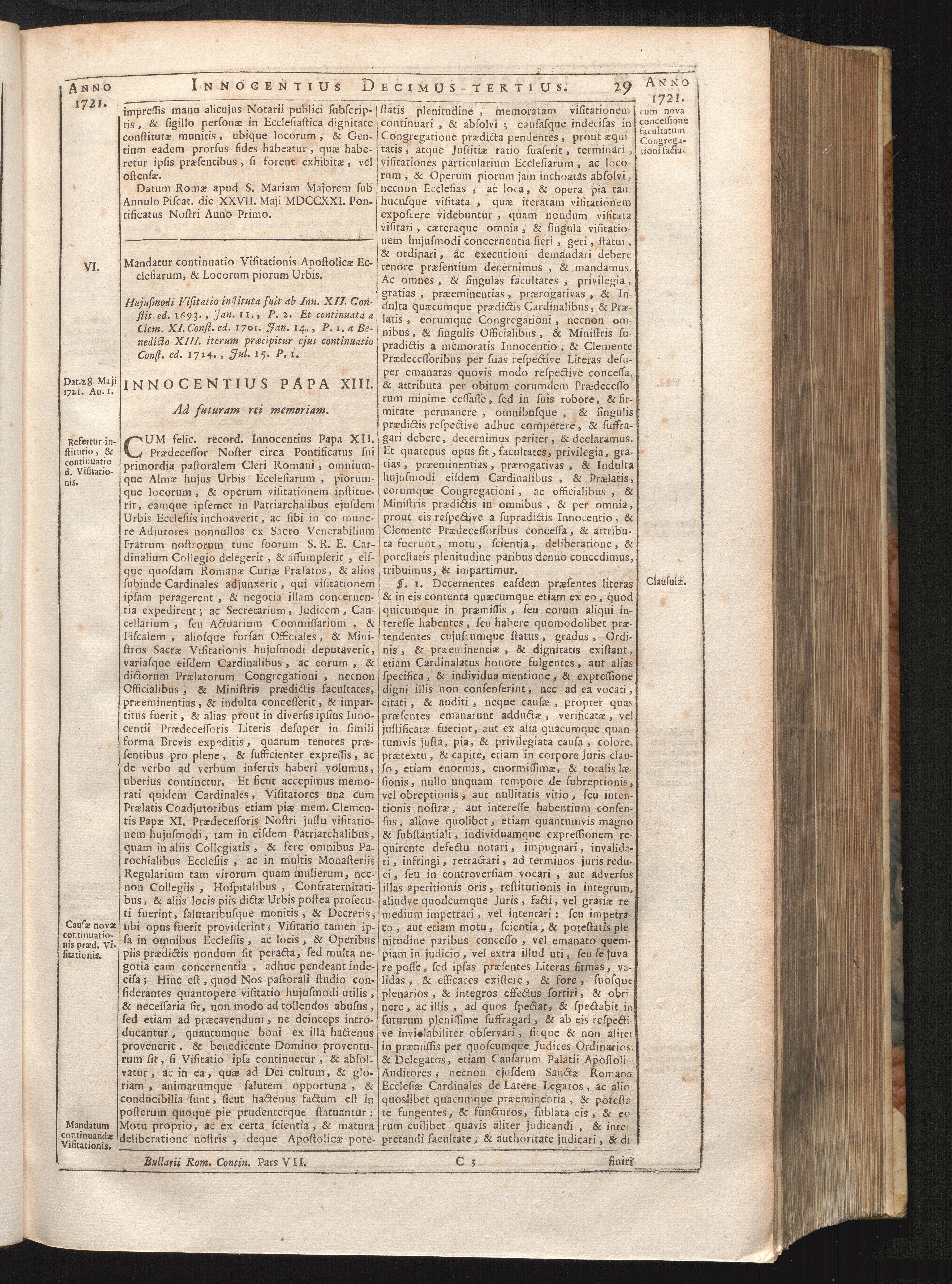 Tomus Decimus-Tertius = Continuationis Pars VII (1740) Complectens Constitutiones ab Innocentio XIII. & Benedicto XIII. editas