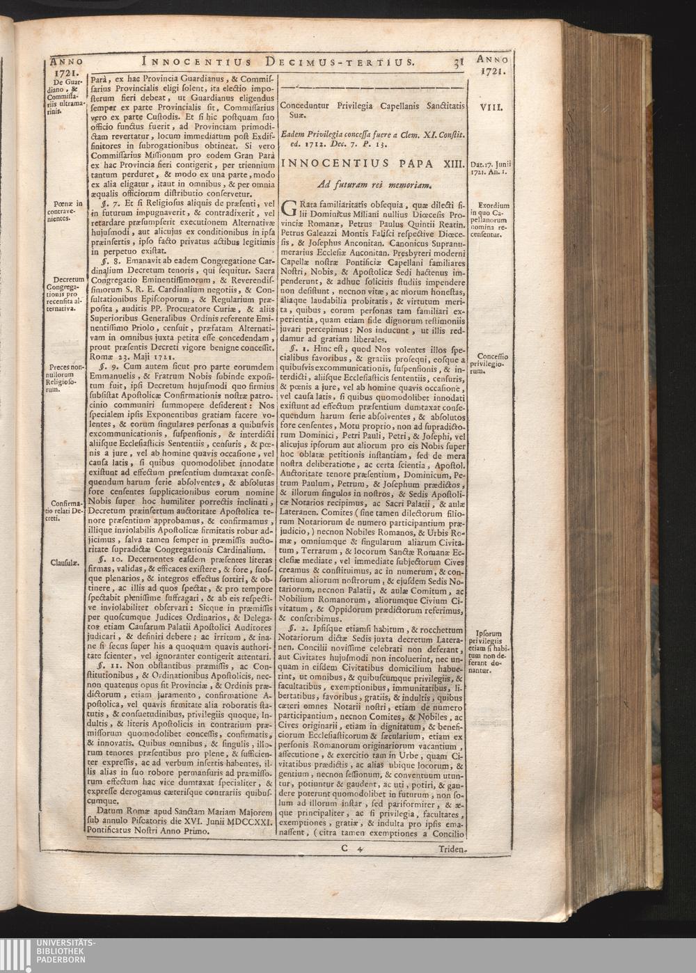 Tomus Decimus-Tertius = Continuationis Pars VII (1740) Complectens Constitutiones ab Innocentio XIII. & Benedicto XIII. editas