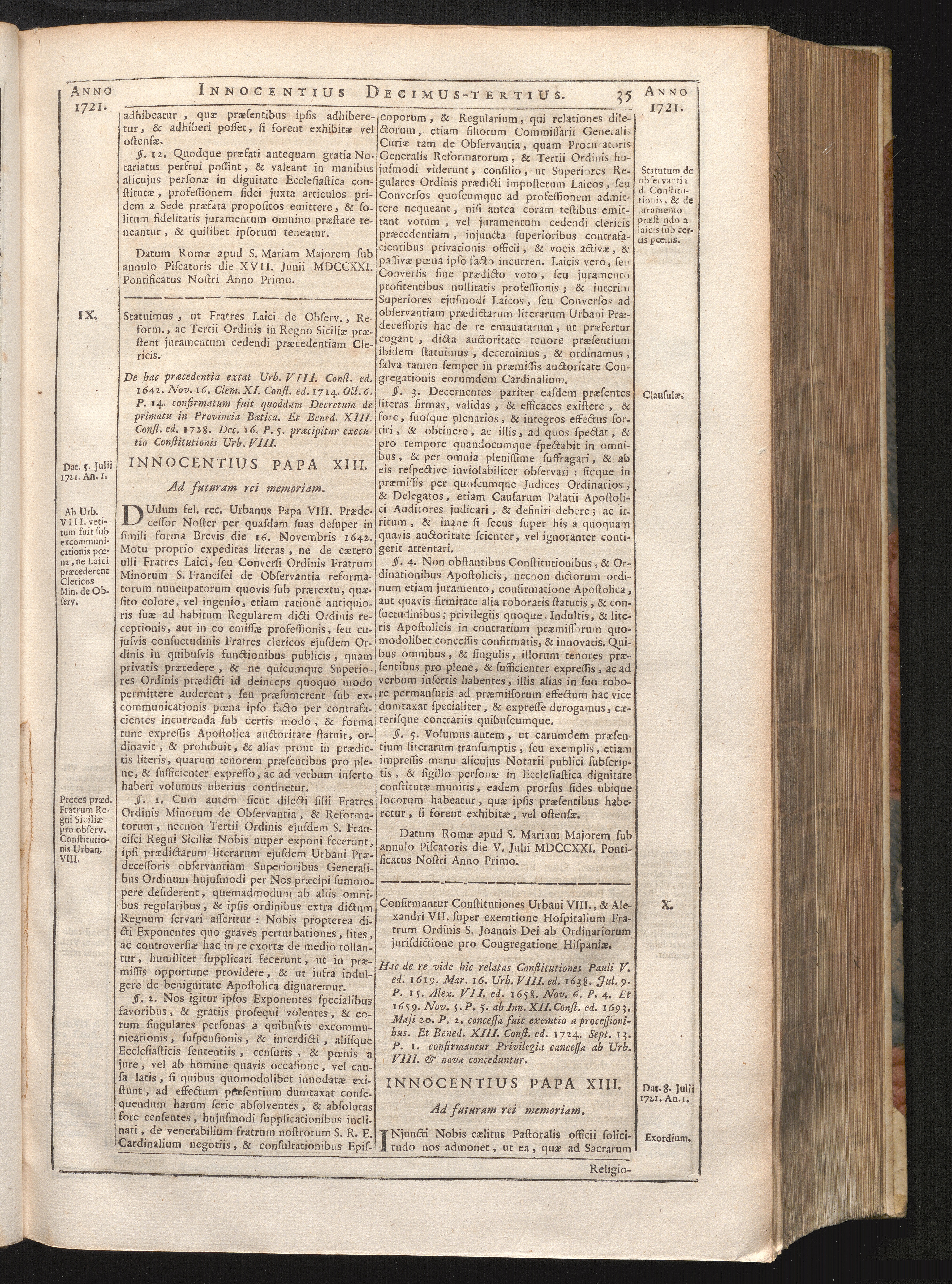 Tomus Decimus-Tertius = Continuationis Pars VII (1740) Complectens Constitutiones ab Innocentio XIII. & Benedicto XIII. editas
