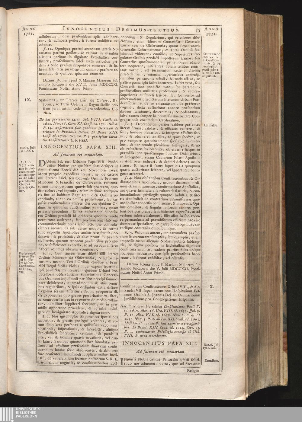 Tomus Decimus-Tertius = Continuationis Pars VII. Complectens Constitutiones ab Innocentio[...]