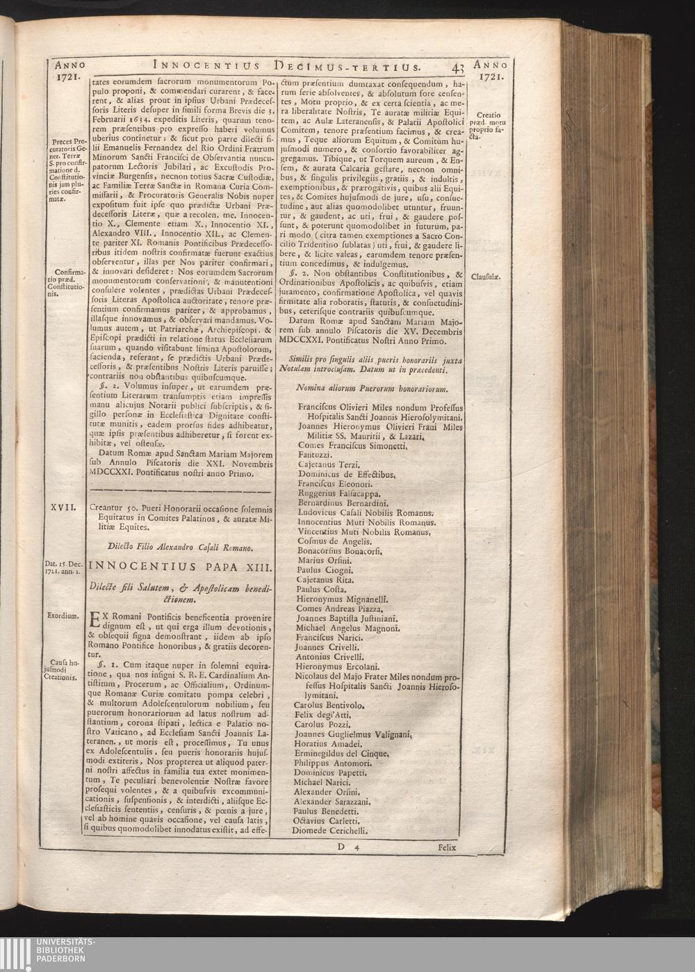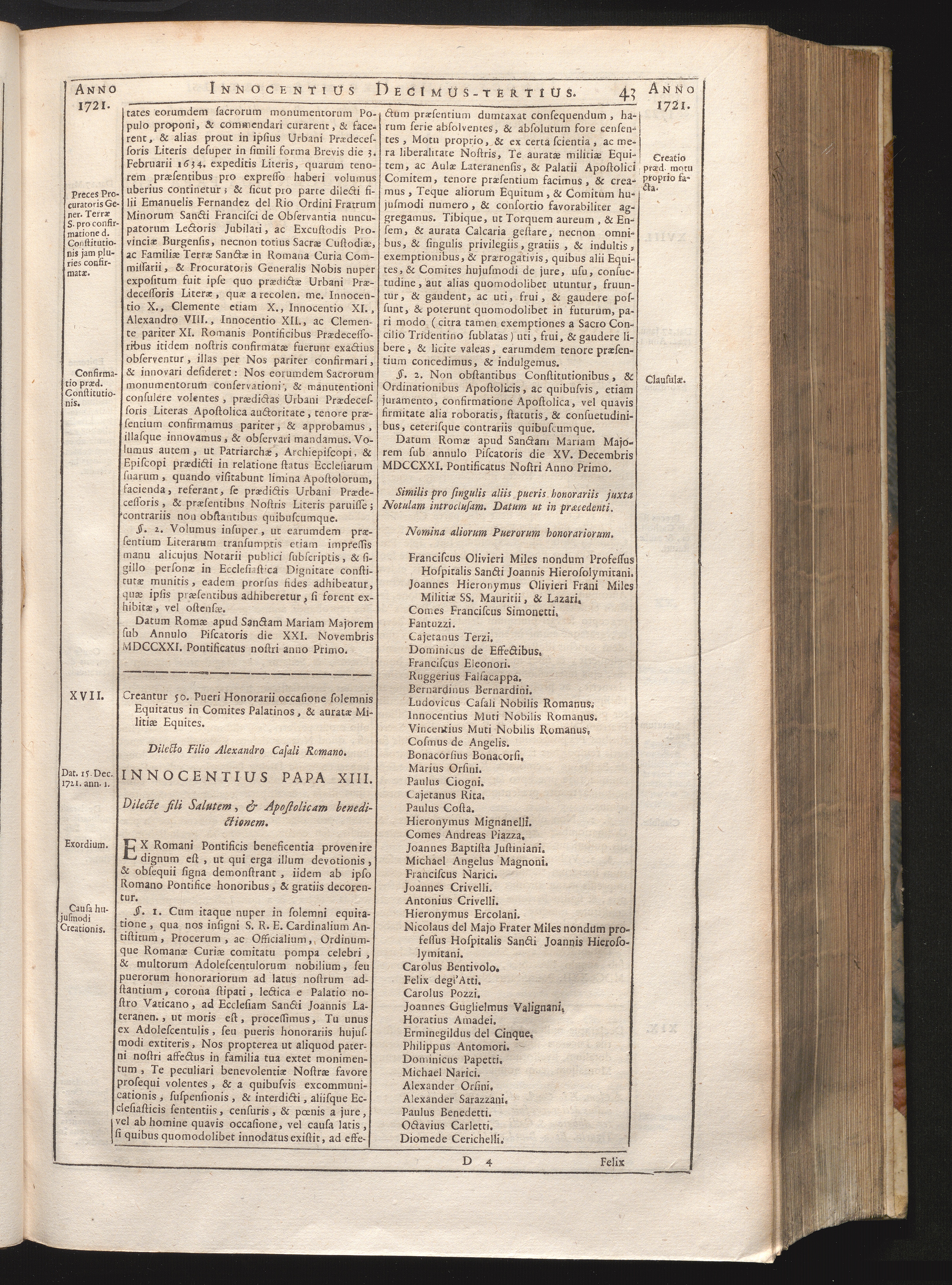 Tomus Decimus-Tertius = Continuationis Pars VII (1740) Complectens Constitutiones ab Innocentio XIII. & Benedicto XIII. editas