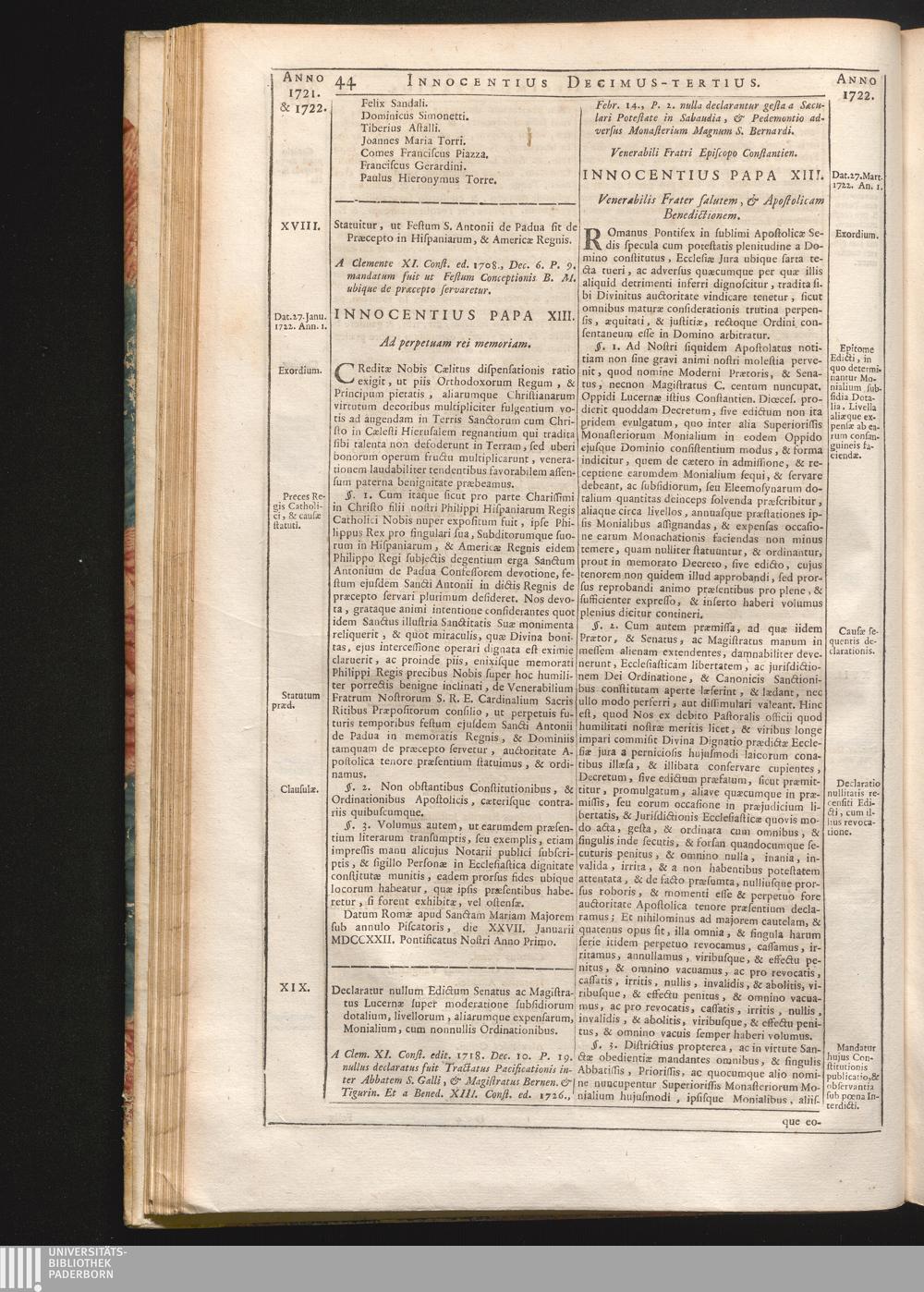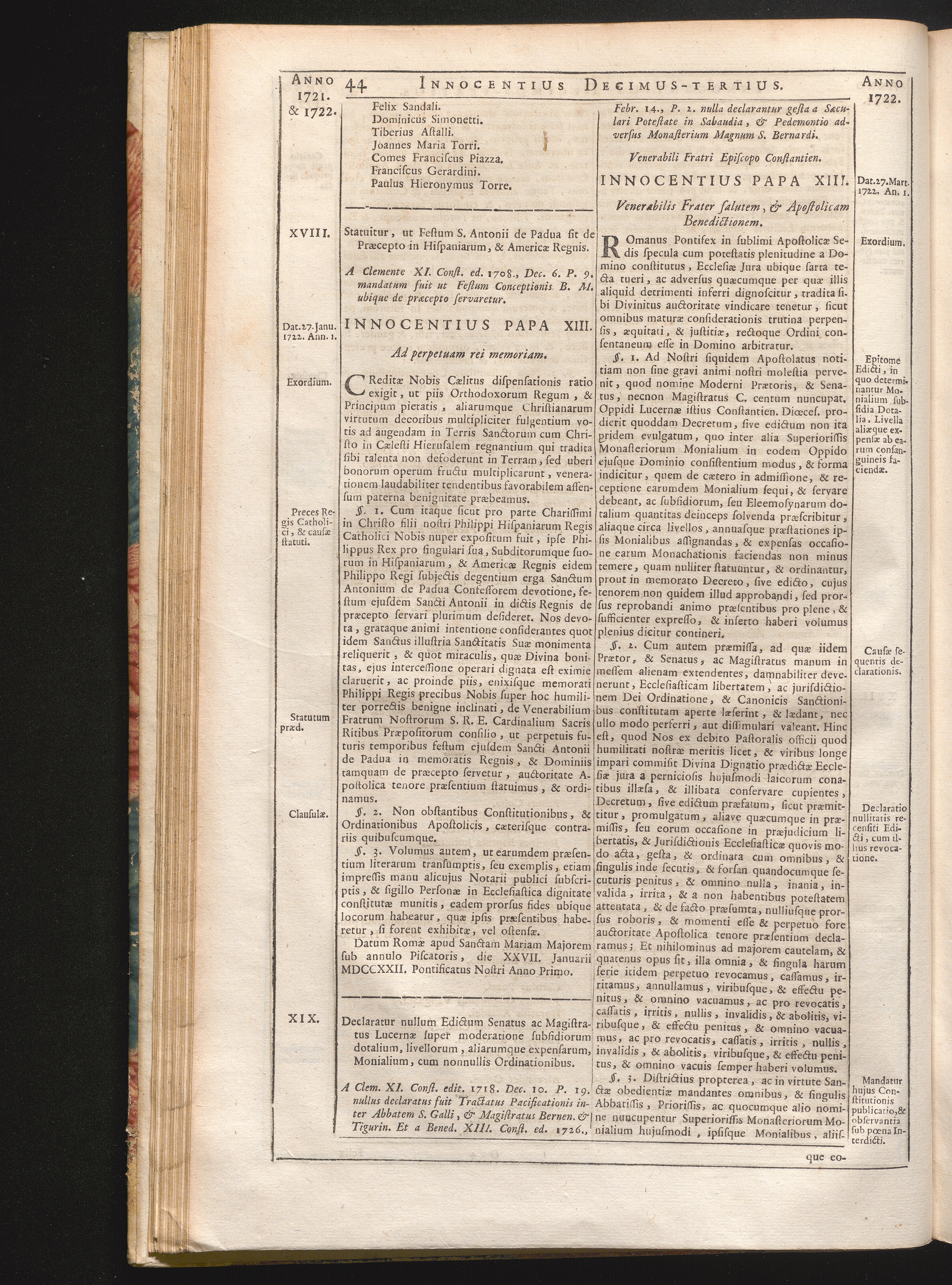 Tomus Decimus-Tertius = Continuationis Pars VII (1740) Complectens Constitutiones ab Innocentio XIII. & Benedicto XIII. editas
