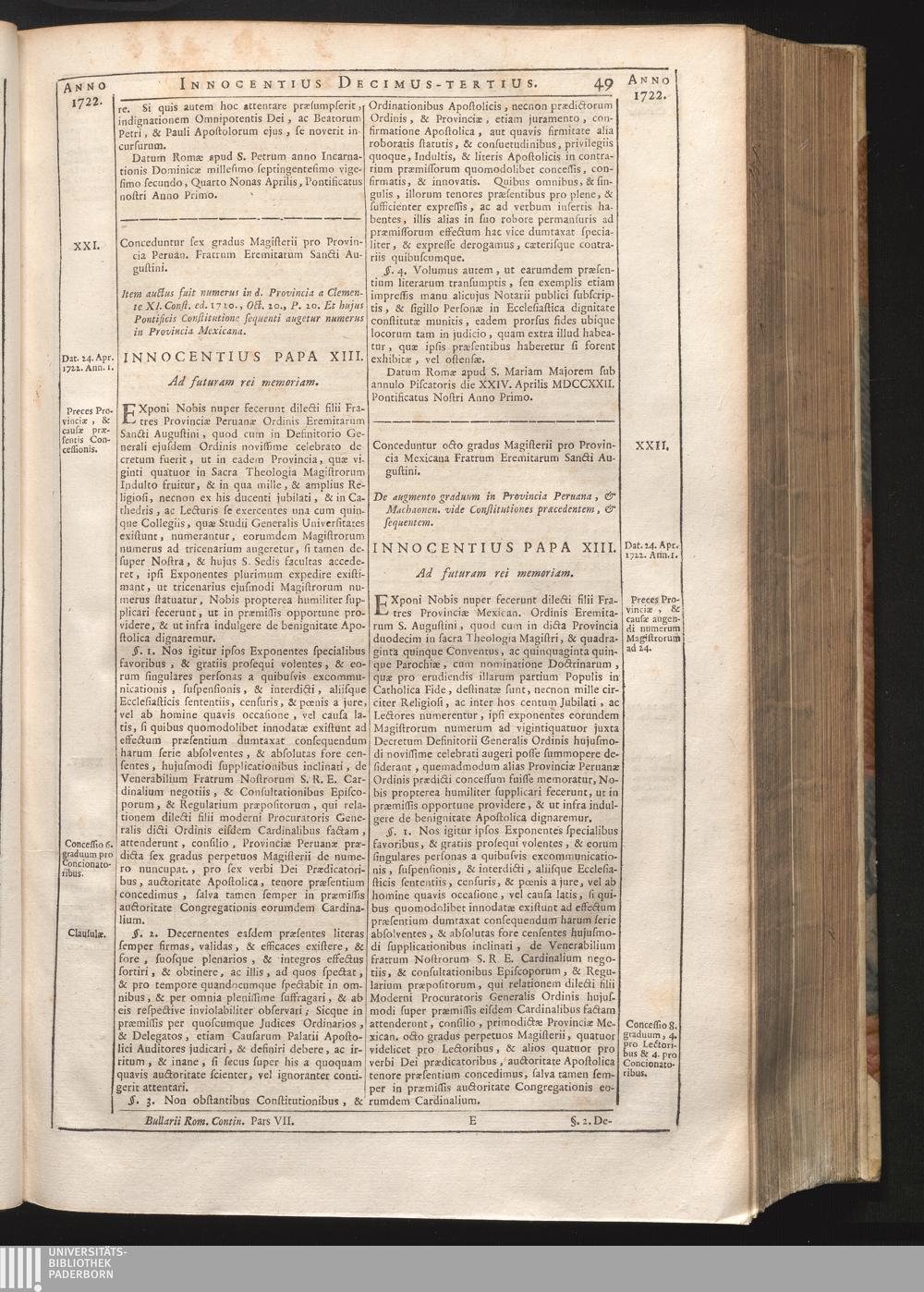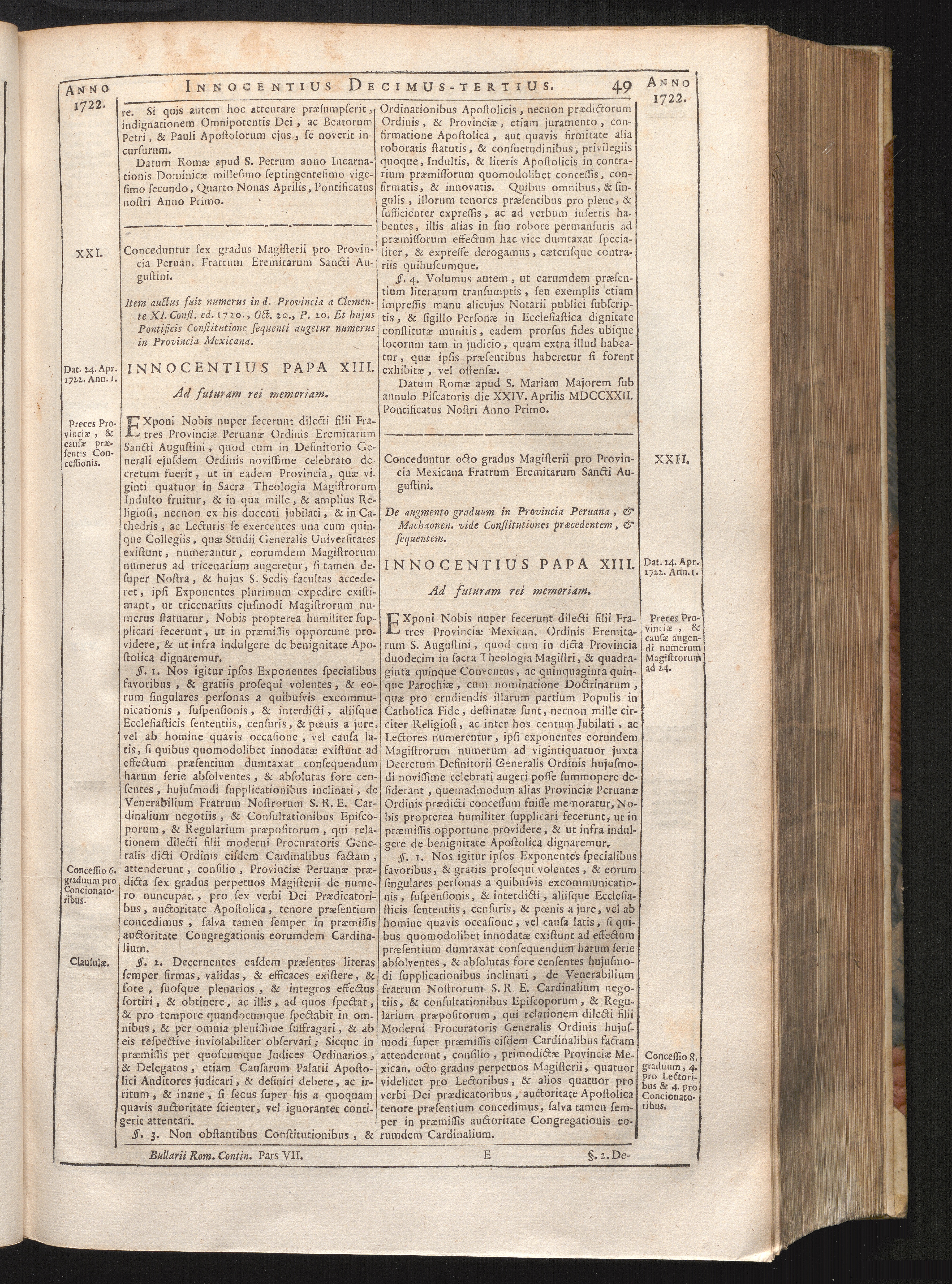 Tomus Decimus-Tertius = Continuationis Pars VII (1740) Complectens Constitutiones ab Innocentio XIII. & Benedicto XIII. editas