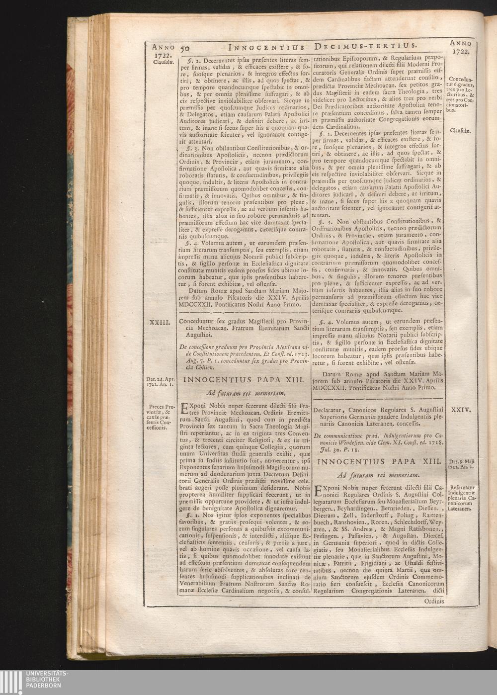 Tomus Decimus-Tertius = Continuationis Pars VII (1740) Complectens Constitutiones ab Innocentio XIII. & Benedicto XIII. editas