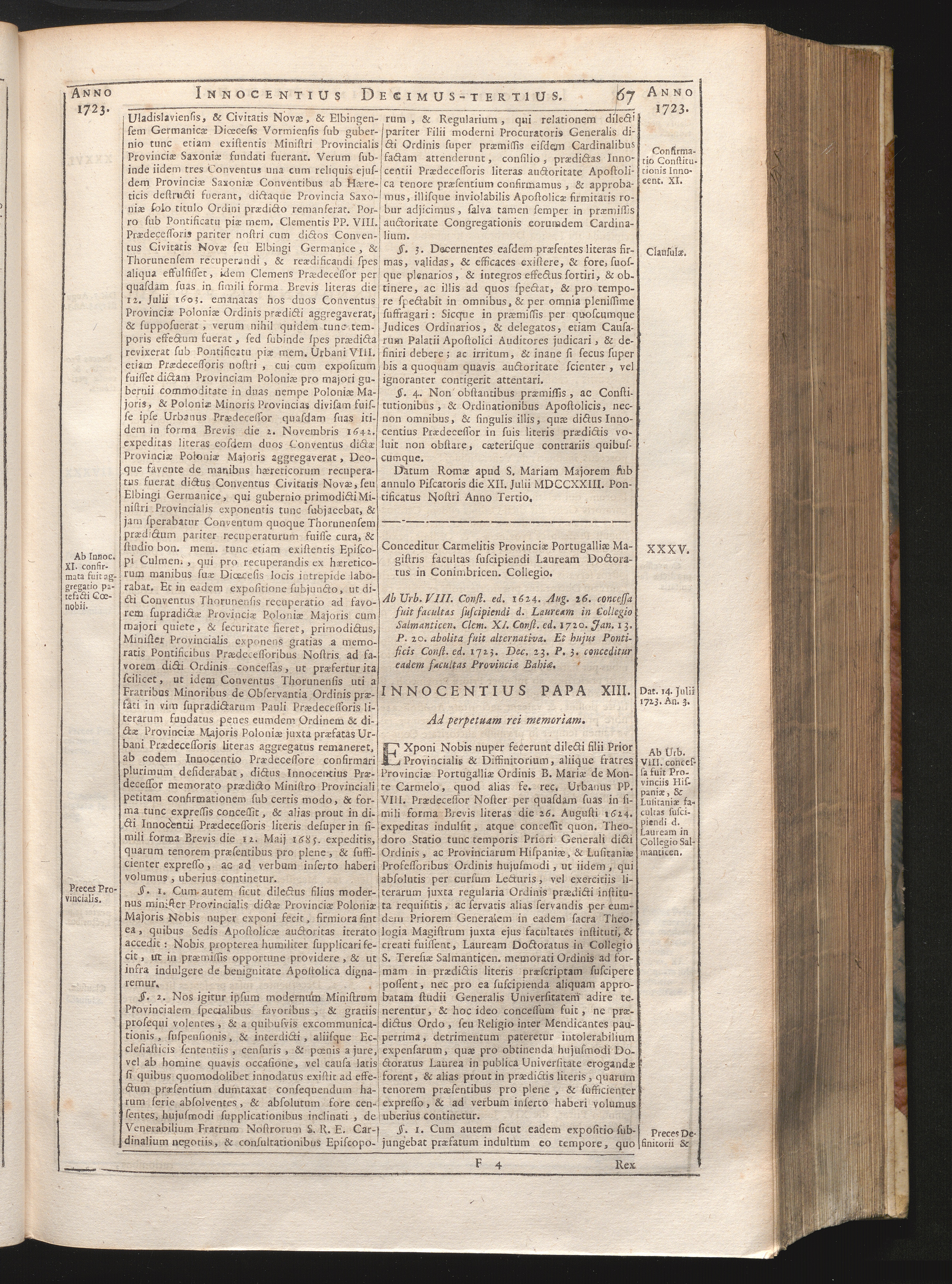 Tomus Decimus-Tertius = Continuationis Pars VII (1740) Complectens Constitutiones ab Innocentio XIII. & Benedicto XIII. editas