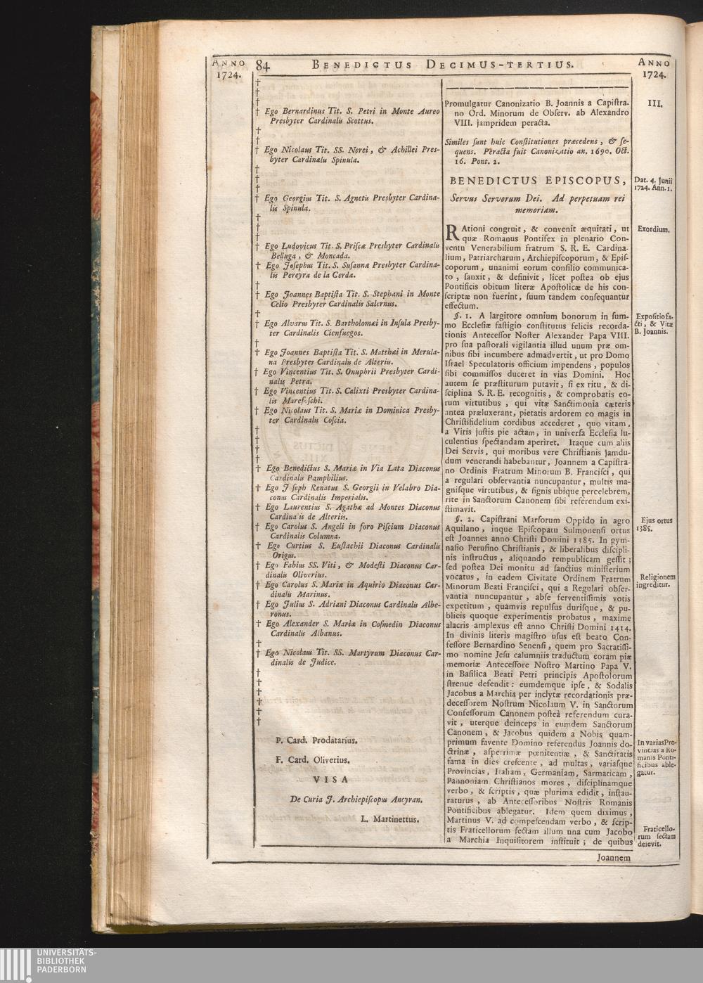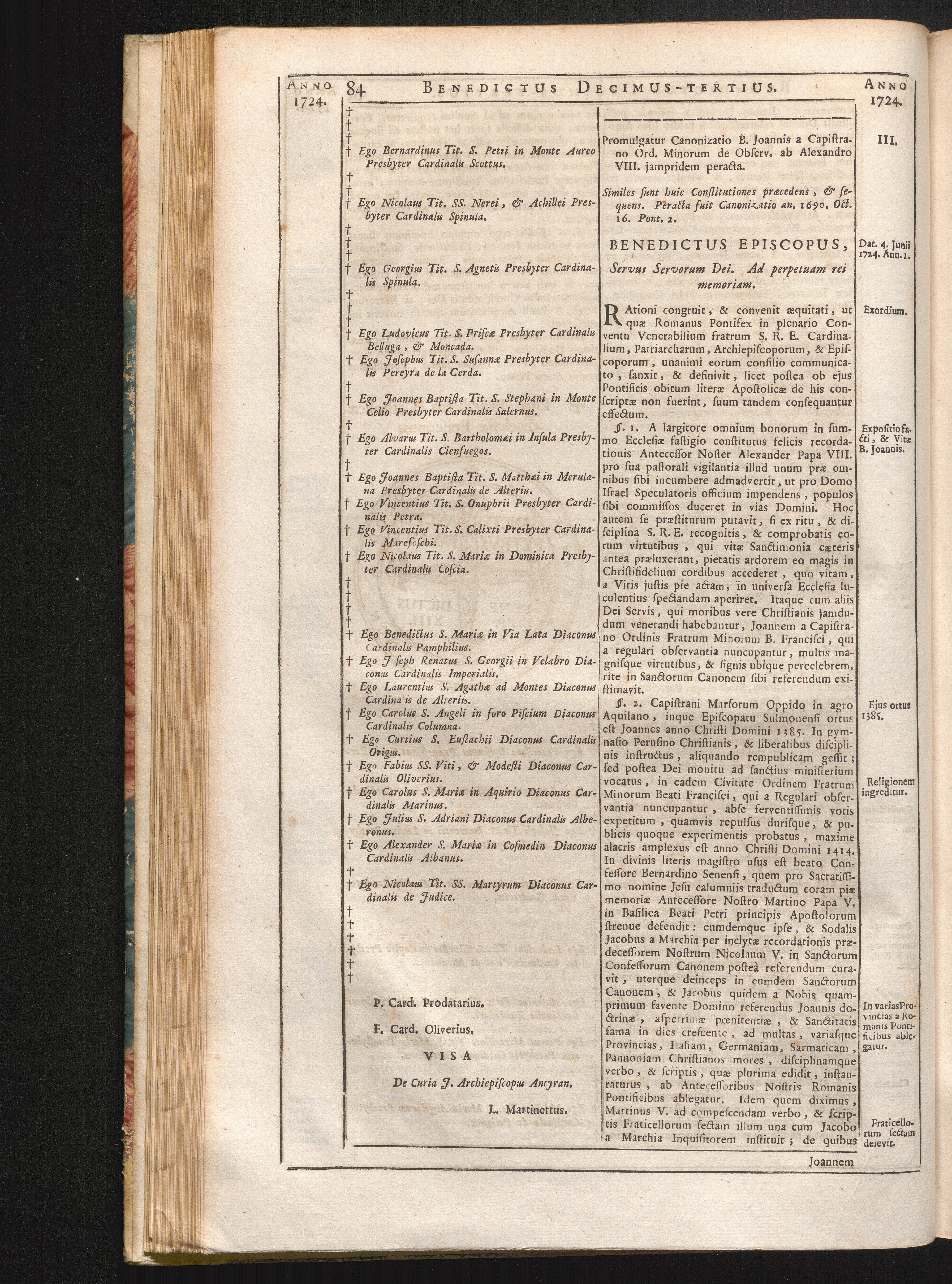 III. Promulgatio Canonizationis B. Joannis a Capistrano.